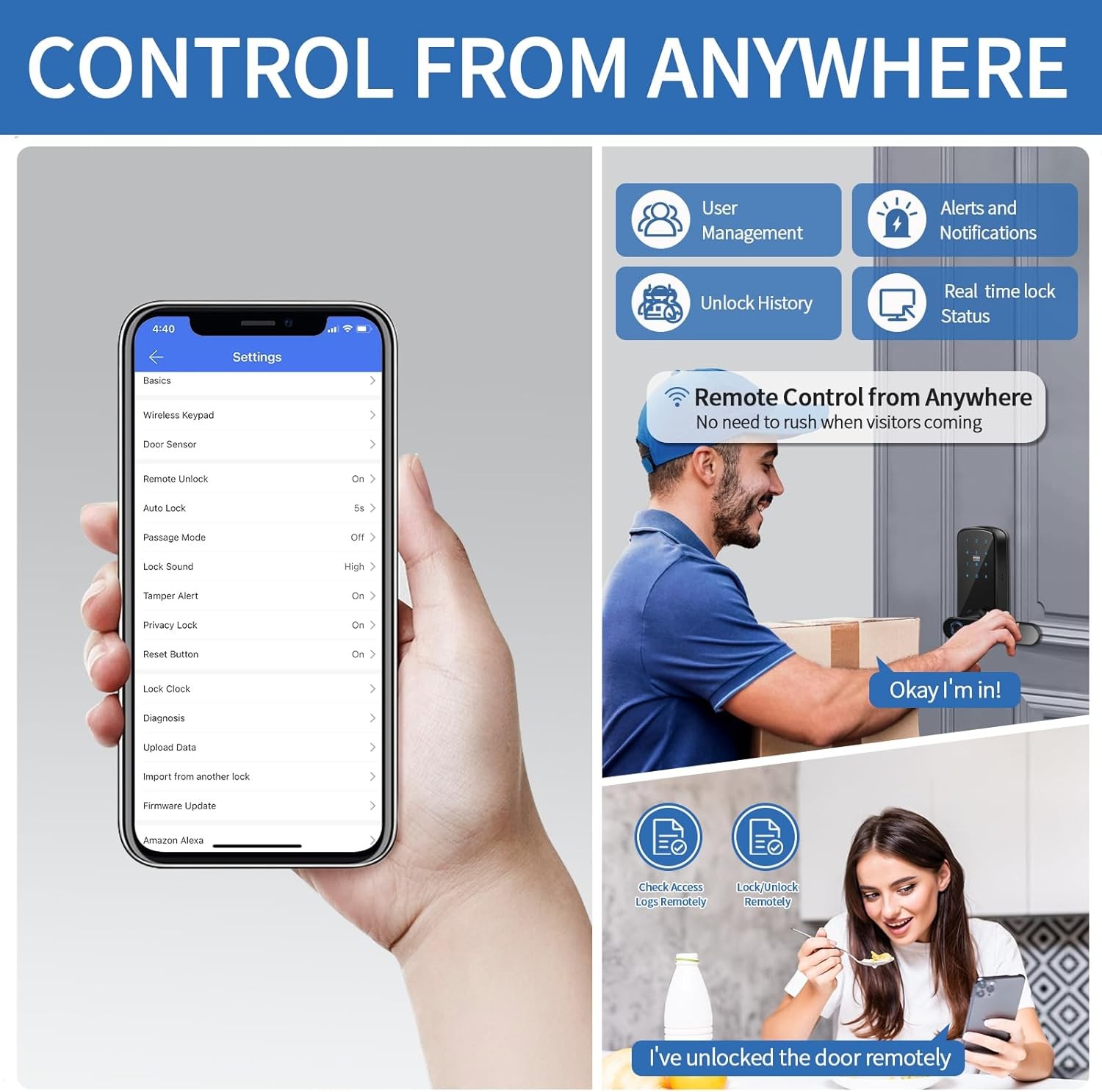 Digital Door Lock by sharing temporary passwords or E-keys, you can authorize visitors to enter your home anytime, anywhere, without worrying about them misusing or duplicating physical keys, and without having to return home to authorize them.
