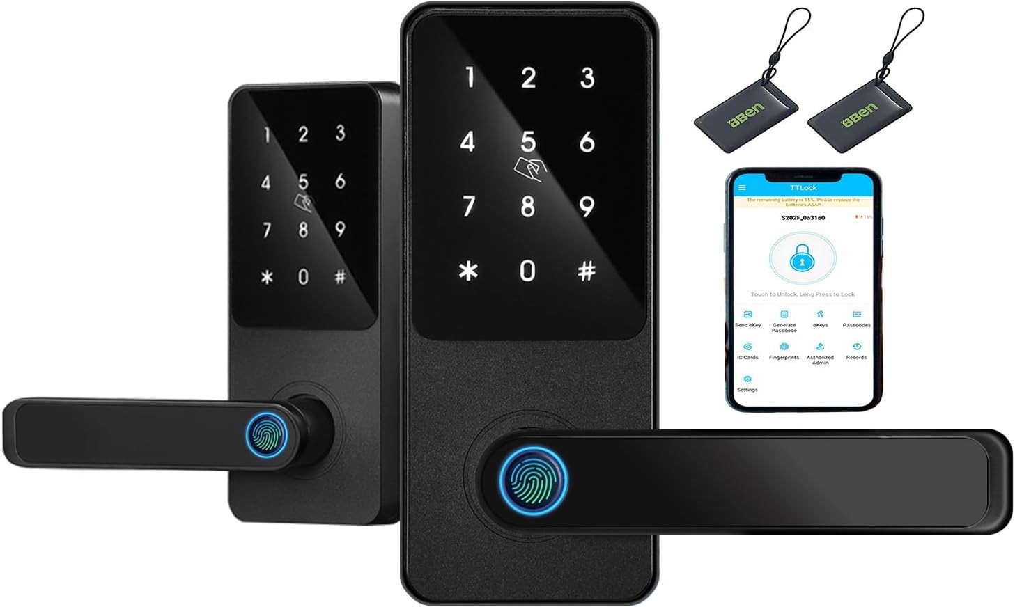 BBEN Fingerprint Keyless Entry Door Lock with Reversible Handle,Touchscreen Keypad,Electronic Digital Bluetooth Front Door Lock,Auto Lock,Easy Installtion for Home Apartment Airbnb Office