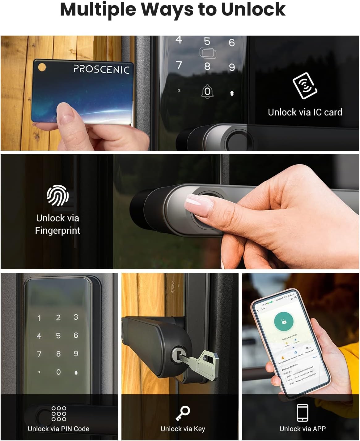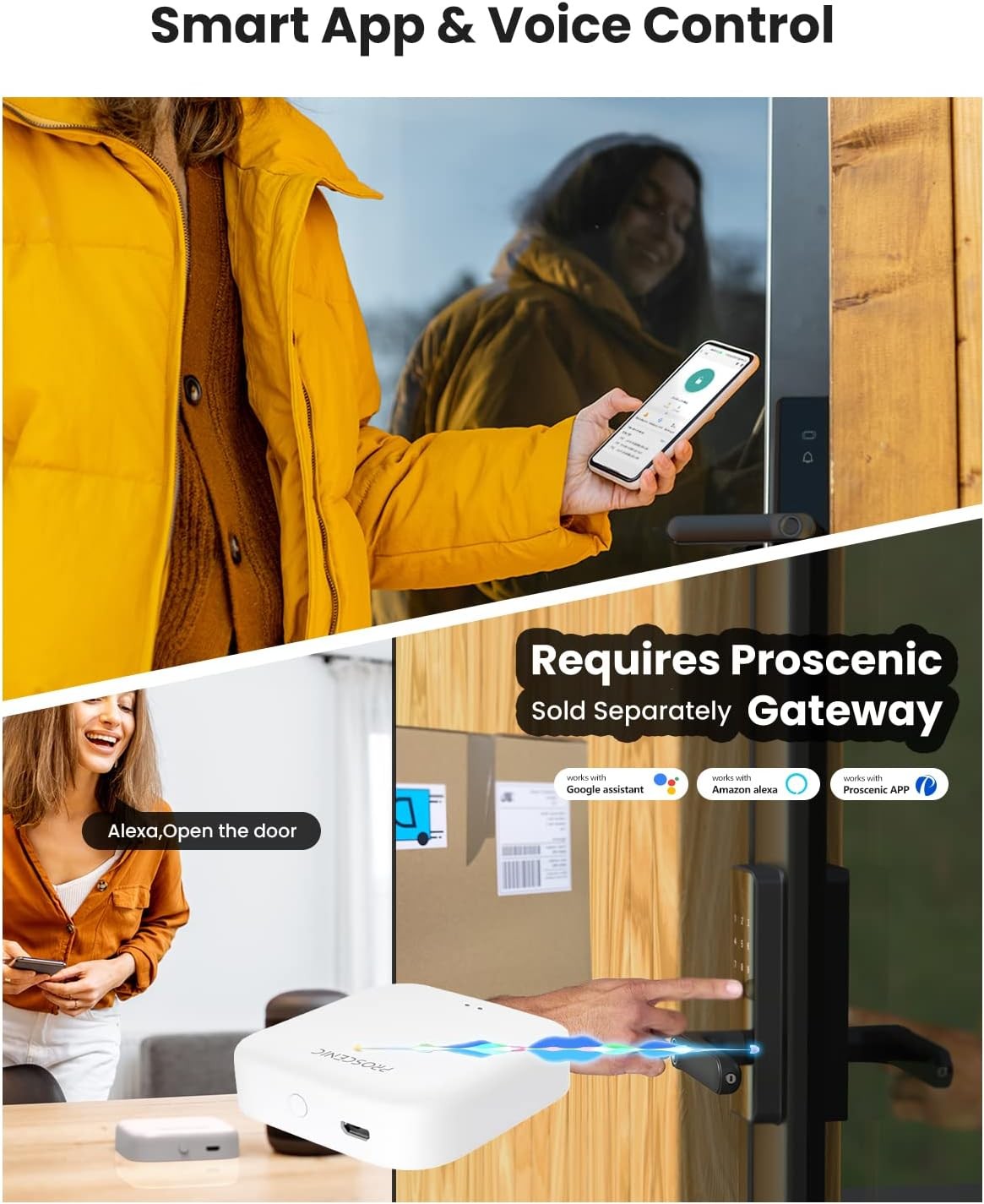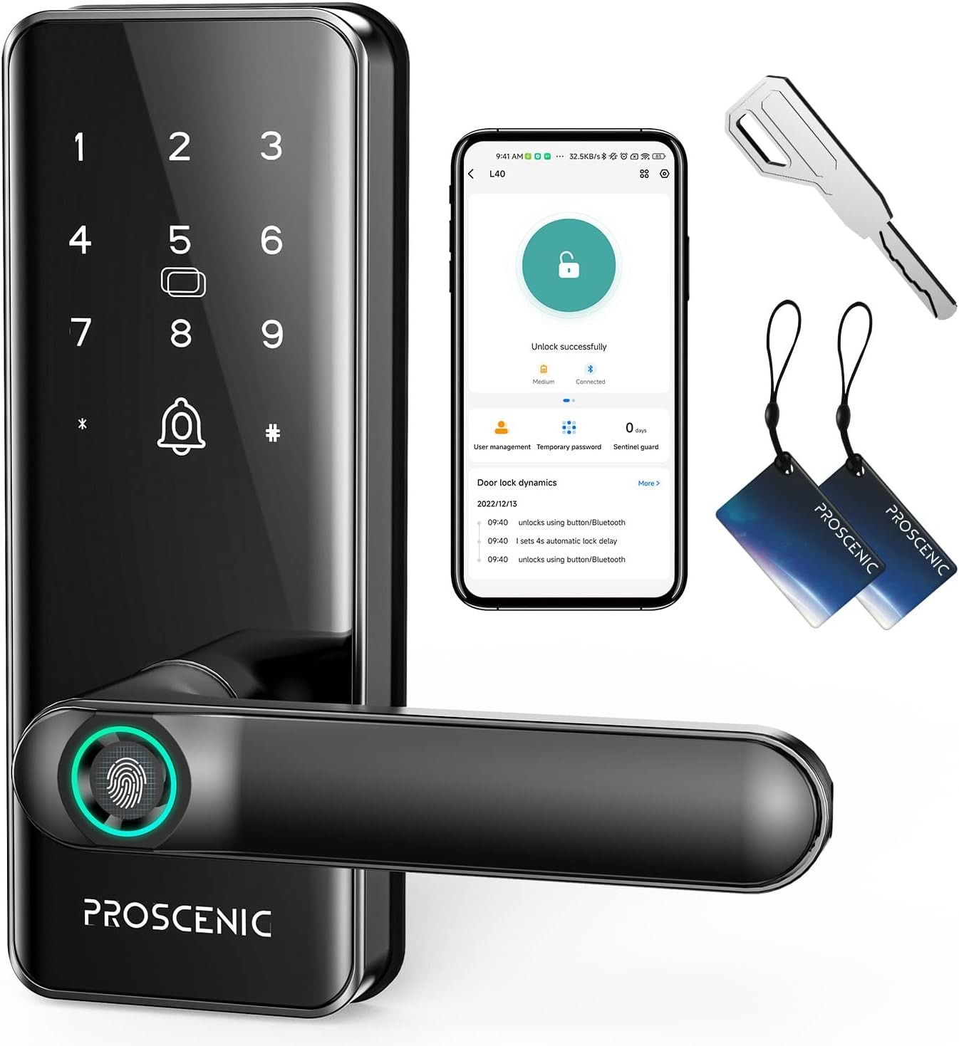 Smart Lock, Proscenic Keyless Entry Door Lock with Handle, Fingerprint Door Locks Support WiFi & Bluetooth, Touchscreen Electronic Door Locks with Keypads for Front Door, Bedroom, Home, Hotel, Airbnb
