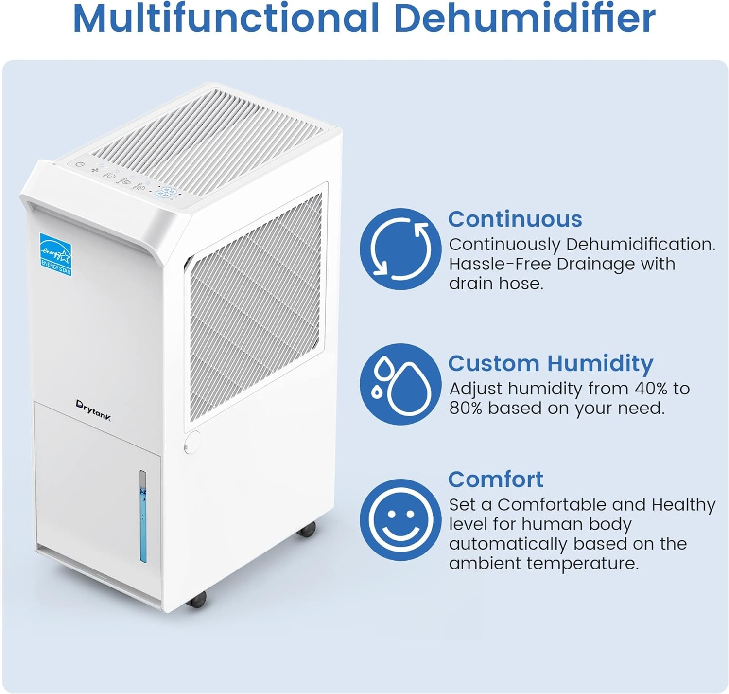 Vellgoo 3,200 Sq.Ft Energy Star Dehumidifier for Basement with Drain Hose, 36 Pint DryTank Dehumidifiers for Large Room, Suit for Garden Hose, Intelligent Humidity Control, 24H Timer White