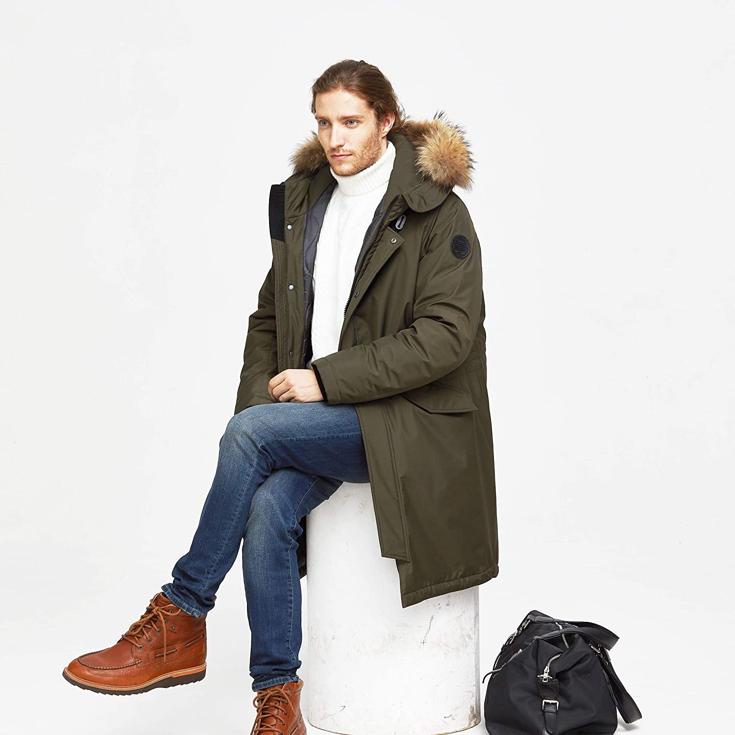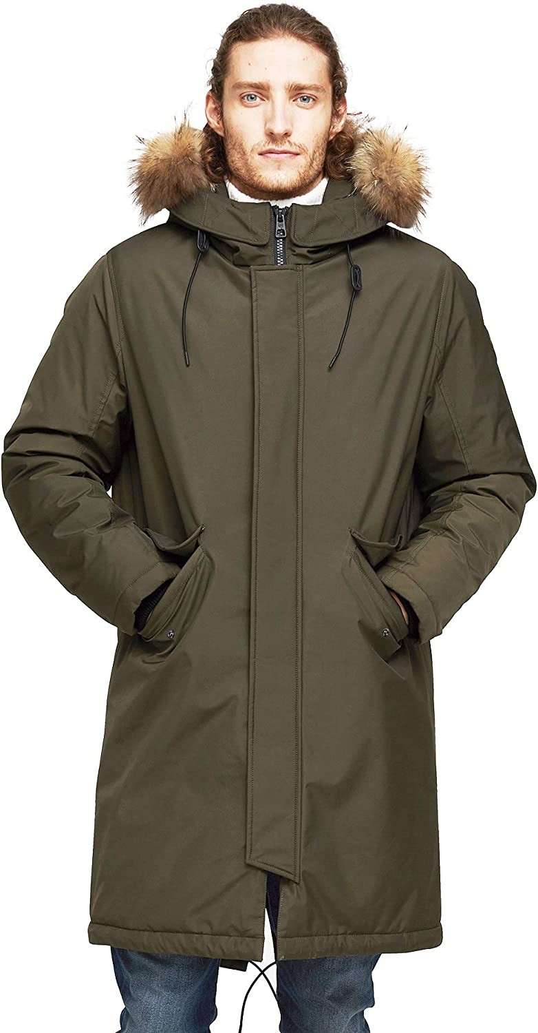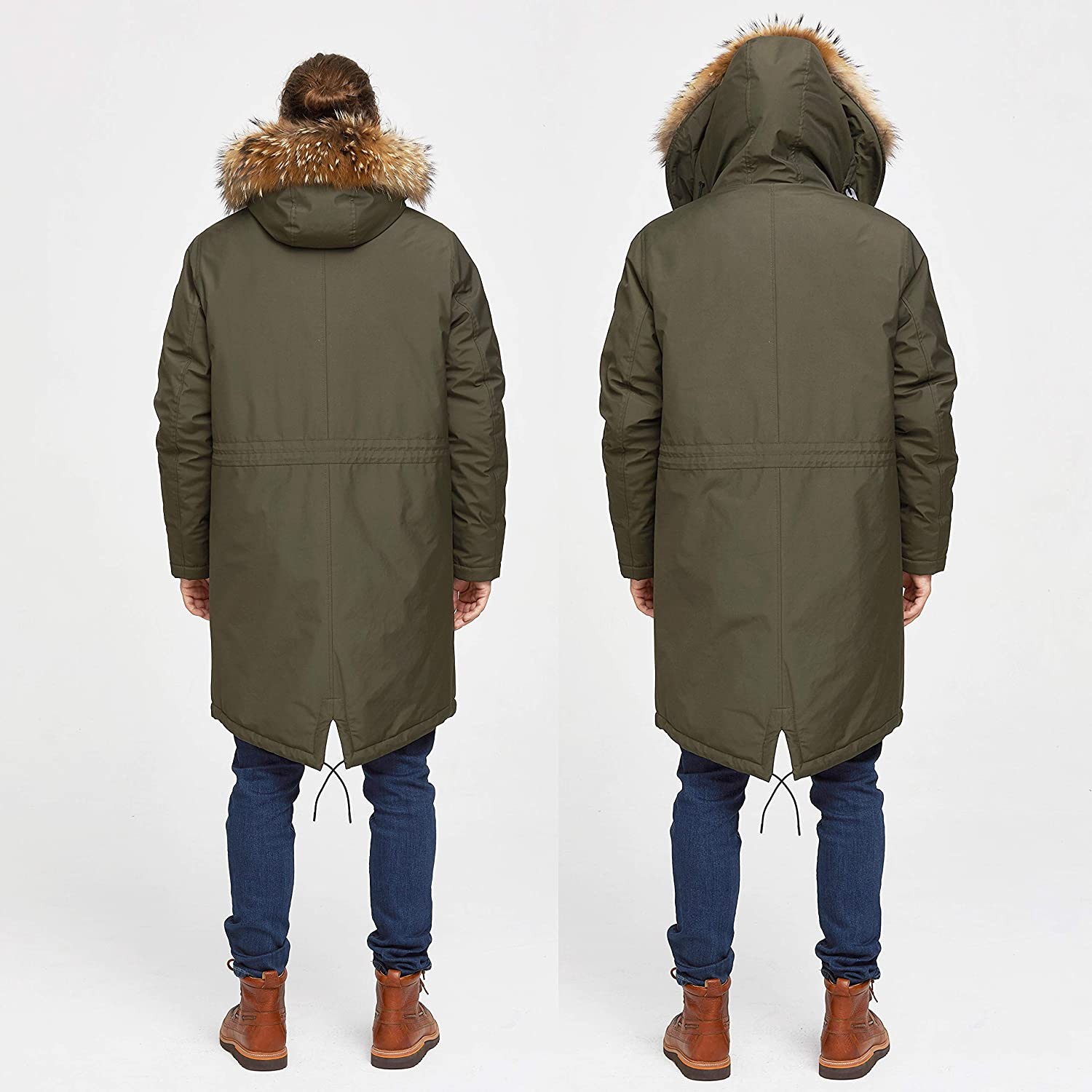 Polyester,Cotton,Fur Zipper closure WATERPROOF SHELL & FILLING: 100% polyester, high-tech polyester fabric keeps your body dry and warm in any condition ;100% Polyester down cotton lining provides perfect warmth and comfort in cold winter. When a water drop fall on the fabric, just flip it then drop will slip down. Mens real fur hooded Parka Coat is sewn tightly with small stitches. Best choice for New Year gifts to son,father,husband,friends,teacher. PERFECT Medium-length Parka Coat : Simple business style combined with classic leisure design,this Parka coat keeps you comfortable in cold urban settings. When cold weather sets in, you need a thick coat to keep warm and show your character. When cold weather sets in, you need a relaxed coat to keep warm and show your character. The interior is a soft and warm wave-quilted lining, spacious pockets. Features: 1). Hooded with detachable snap-on fur trim; 2). Elegant waist drawstring hidden in the hand pocket; 3). The hooded drawstring and the drawstring of the coat hem effectively keep warm in an extremely cold environment; 4). All the pockets have soft lining to keep your fingers warm; 5). Hidden Two-way zipper with snap closure and storm flap. NOTE: The zipper is on the left side of the jacket for men; 6). storm cuffs to keep the heat and prevent the cold wind pouring in. TIGER FORCE Men’s Fur Hood Parka Coat, provided with warmth keeping effect and fashion design, would be your top choice.High quality material and mature workmanship are cooperated to manufacture a perfect overcoat.