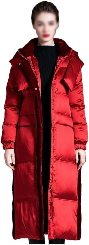 ATsuyo Down Jacket Women's Extra-long Hooded Winter Thickened Velvet Splicing Knee-length White Duck Down Down Jacket