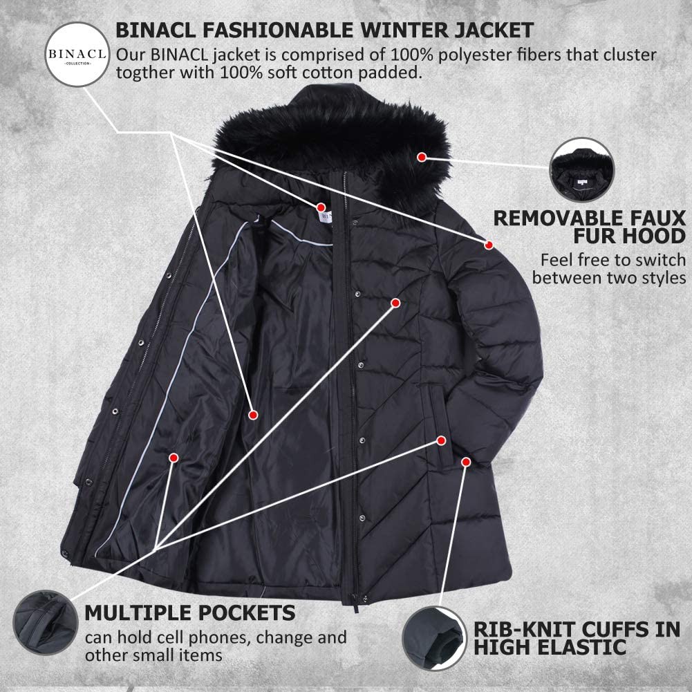 BINACL Women's Winter Warm Thicken Long Outwear Pockets Coat Parka Jacket(7Color,XS-XL)