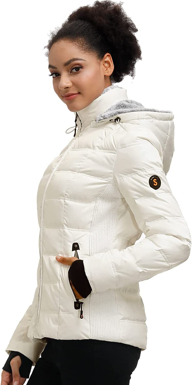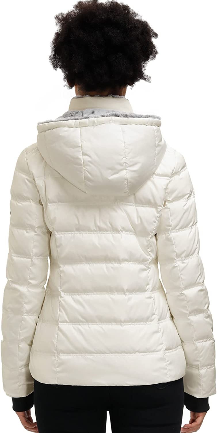 Women Midweight Winter Down Puffer Jacket, Warm Hooded Winter Down Jacket for Women with Faux-Fur Hood & Collar