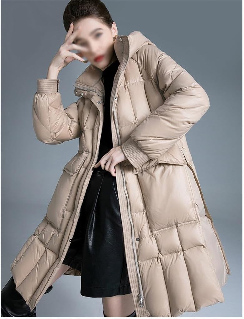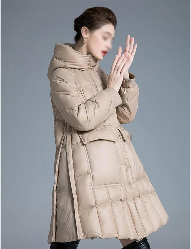 Douxie Down Jacket Women's Mid-length A Swing Thickened Hooded Loose Thin White Duck Down Down Jacket Coat