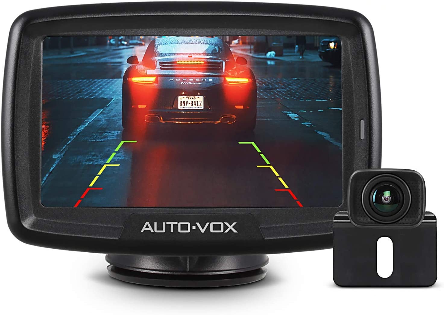 【Back Up Camera with Stable & Vivid Image】With digital wireless signal, CS-2 license plate car backup camera delivers a stable image without any interference from other signals. Equipped with a PC1058 sensor, the rear camera provides vivid footage, which restores what you see behind your vehicles directly. 【Accuracy - Top priority for parking Camera】The reverse camera comes with 110 golden angles to avoid image distortion.CS-2 wireless backup camera for trucks is the best choice for reversing/monitoring. Together with the adjustable parking lines that fit different heights camera installation place makes CS-2 a trusted parking assistant. 【Ideal Back up Camera Systems for Car】The waterproof standard of this camera is IP 68, the highest and lowest temperature resistance is -4°F~149°F, and the lumen rating is 0.1 at low light night. Therefore whether it is sunny or rainy, hot or cold, day or night, the camera always performs well. 【Easy Installation Wireless Rear View Camera】The suction cup mount allows you to install the monitor on windshield or dashboard. The transmitter is cleverly designed inside the backup camera, no wires connecting from monitor to rear camera, all of these simplify the installation. you just need to mount the monitor, attach the rear camera to the license plate and connect it to reverse light or constant power. 【License Plate Backup Camera with High Compatibility】The wireless range can be up to 100ft in the open area, so you can mount the camera in any position of your vehicle. The image can be flipped between mirror (rear view) and facing (front view), which ensures you can use the camera as rear backup camera or front camera optional. 【Good Service】 Just trust the AUTO-VOX brand with your car backup camera, as we have always been a leader in the solar backup camera field. Let everyone drive safer.It offers a clear user guide (installation video), a 30-day money-back guarantee, and a 1-year warranty,7/24 after-sales service.