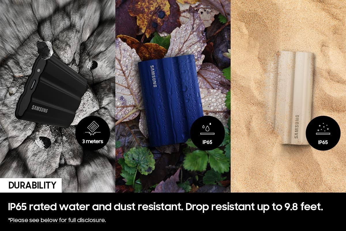 RUGGED DURABILITY: Tough, fast, and compact, the all new rugged PSSD T7 Shield is built to endure with the space to create thanks to an IP65 rating for Dust* and Water** resistance