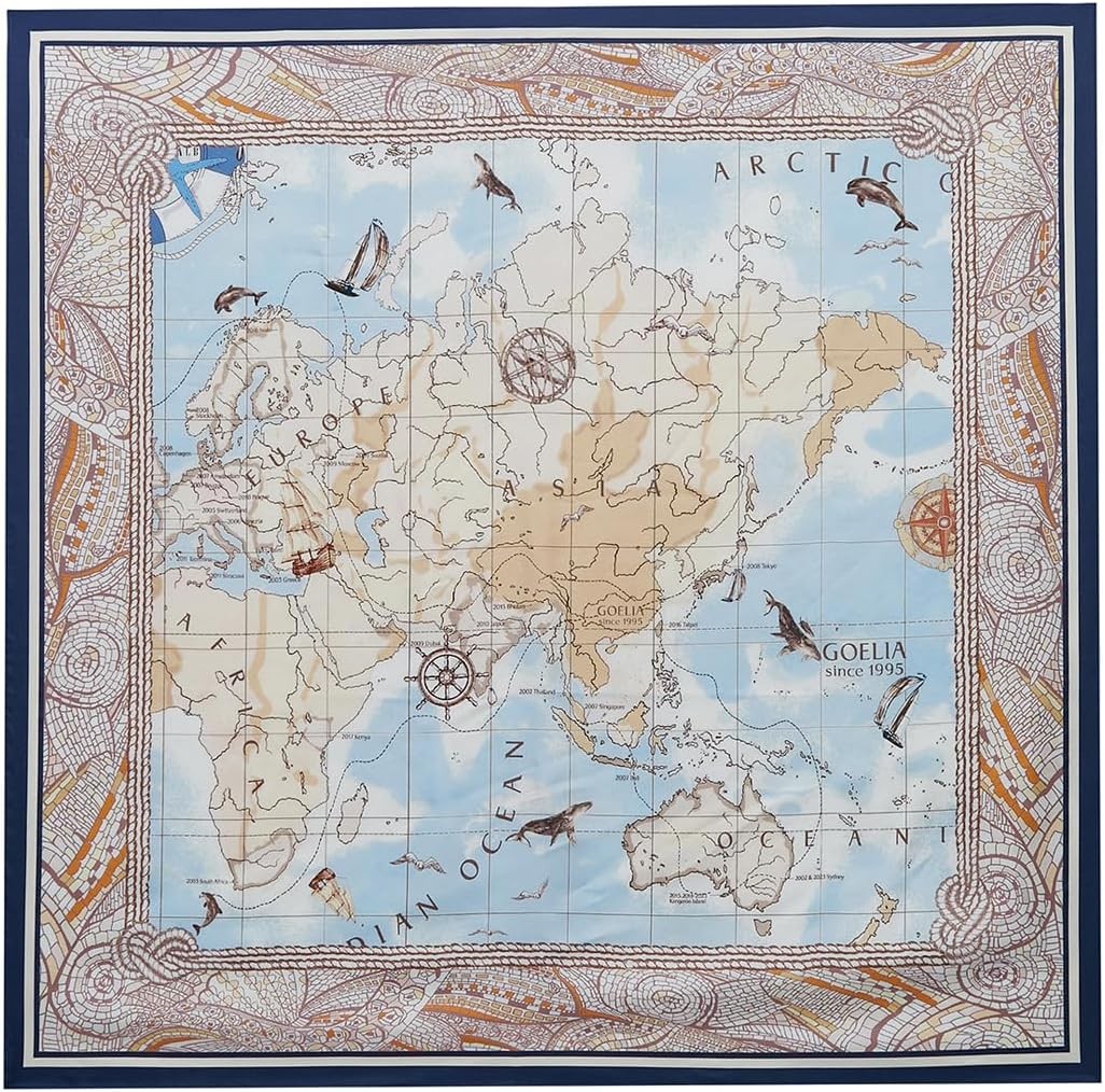 GOELIA DESIGN - It's our exclusive design. Inspired by the footsteps of GOELIA World Travel, created with elements such as maps, whales, sailboats, etc. Using a double-sided printing process like top luxury brands. This ensures precise overlap and vibrant colors. The hand-rolled edges add softness and comfort, making it adaptable to different styles and purposes. It can be tied to a bag for a transformative effect, worn as a neck scarf for elegance, or used as a fashionable headscarf.