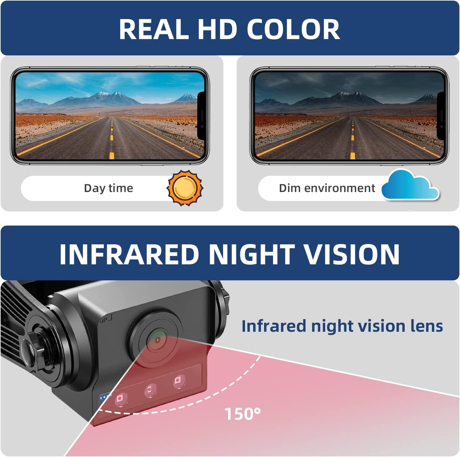 ?【 Waterproof & Night Vision 】IP68 waterproof, it will not affect the use in rainy days. The hitch camera with 3 IR LEDs for providing a good night vision within 30ft in the darkest night, no need any ambient light.