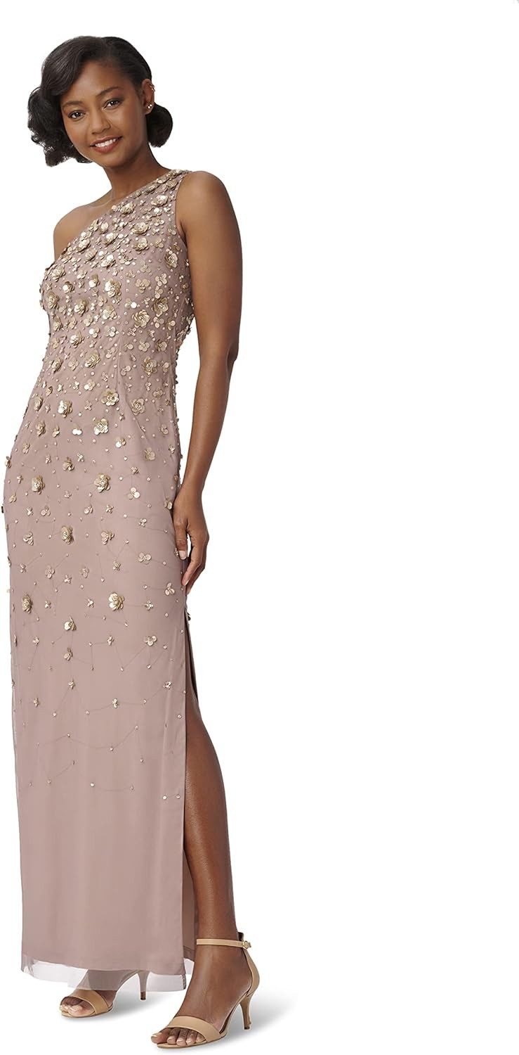 Adrianna Papell Women's One Shoulder Beaded Dress