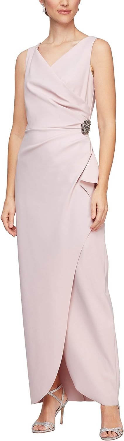 Alex Evenings Women's Slimming Long Side Ruched Dress with Cascade Ruffle Skirt