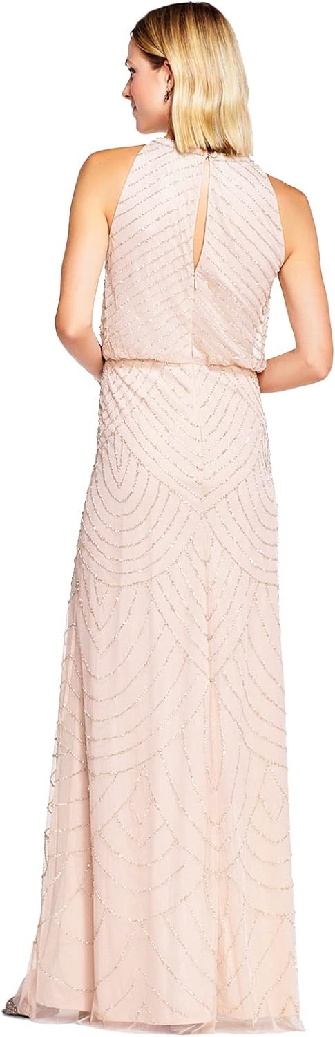 Adrianna Papell Women's Halter Art Deco Beaded Blouson Dress