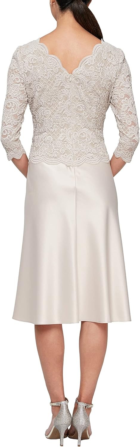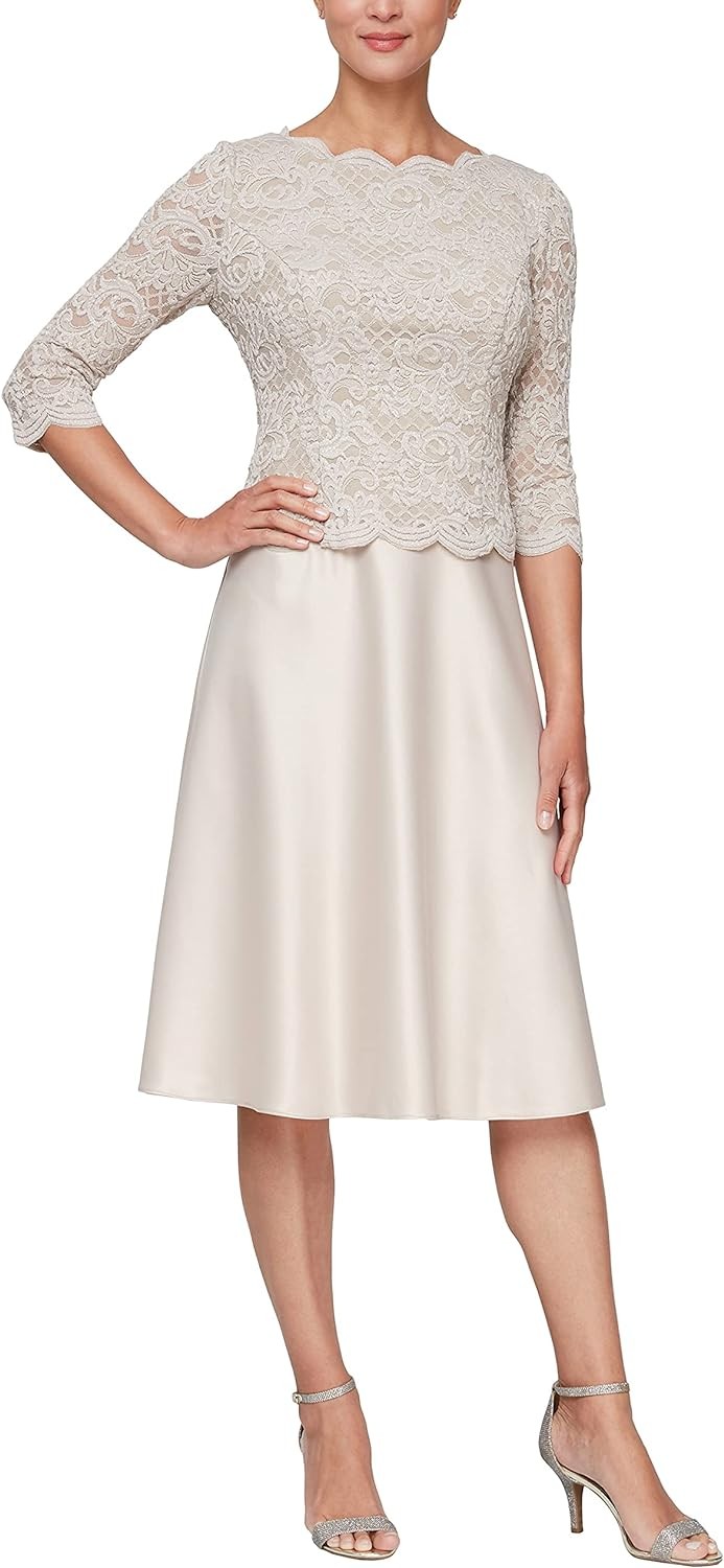 Alex Evenings Women's Tea Length Embroidered Bodice Mock Dress (Reg and Petite)