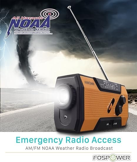 FosPower Emergency Weather Radio (Model A1) NOAA/AM/FM with 7400mWh Portable Power Bank, USB/Solar/Hand Crank Charging, Battery Operated, SOS Alarm & Flashlight for Indoor/Outdoor Emergencies