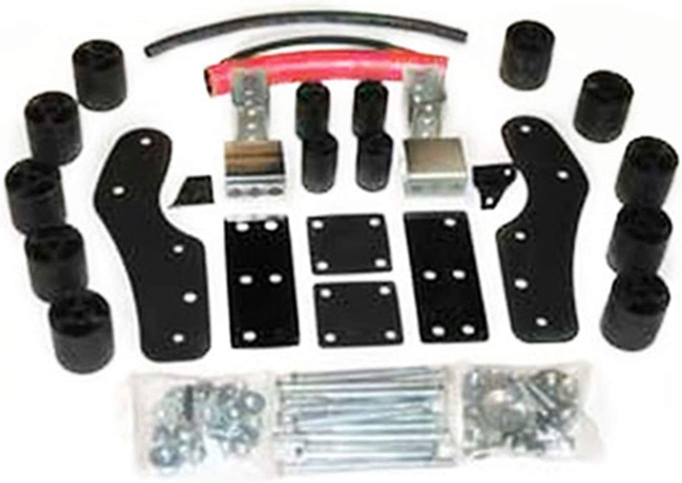 Performance Accessories 3-inch Body Lift Kit PN-5563 raises the vehicle for adding larger diameter tires, without altering the factory suspension system and OE ride characteristics. The kit includes high pressure fiberglass reinforced nylon lift blocks, 3/16 inch thick laser cut and powder coated front and rear bumper relocation brackets, a CNC machined and zinc plated steering extension, high strength hardware, and extension brackets. A set of urethane wheel-well extensions (2wd Gap-Guards PN-6343) or (4wd Gap-Guards PN-6339) are available separately, and are used to conceal any gaps between the body and frame. This system can be installed in 7-8 hours and comes complete with everything necessary for installation. Additional Information: Fiberglass reinforced nylon body blocks CNC machined & zinc plated steering extension Laser cut and powder coated front and rear bumper relocation brackets Laser cut and zinc plated fittings and brackets High strength hardware included Made in the U.S.A.