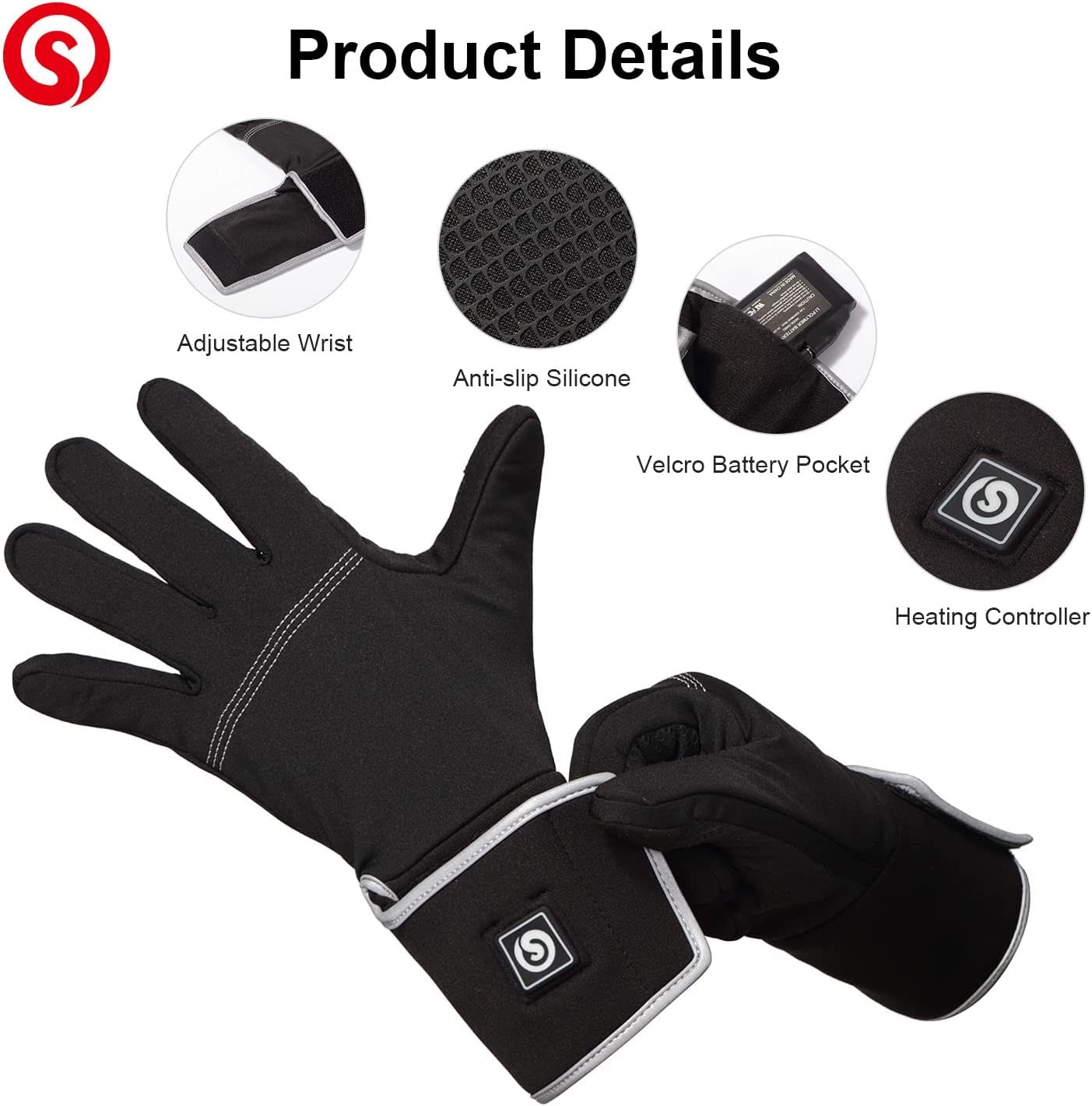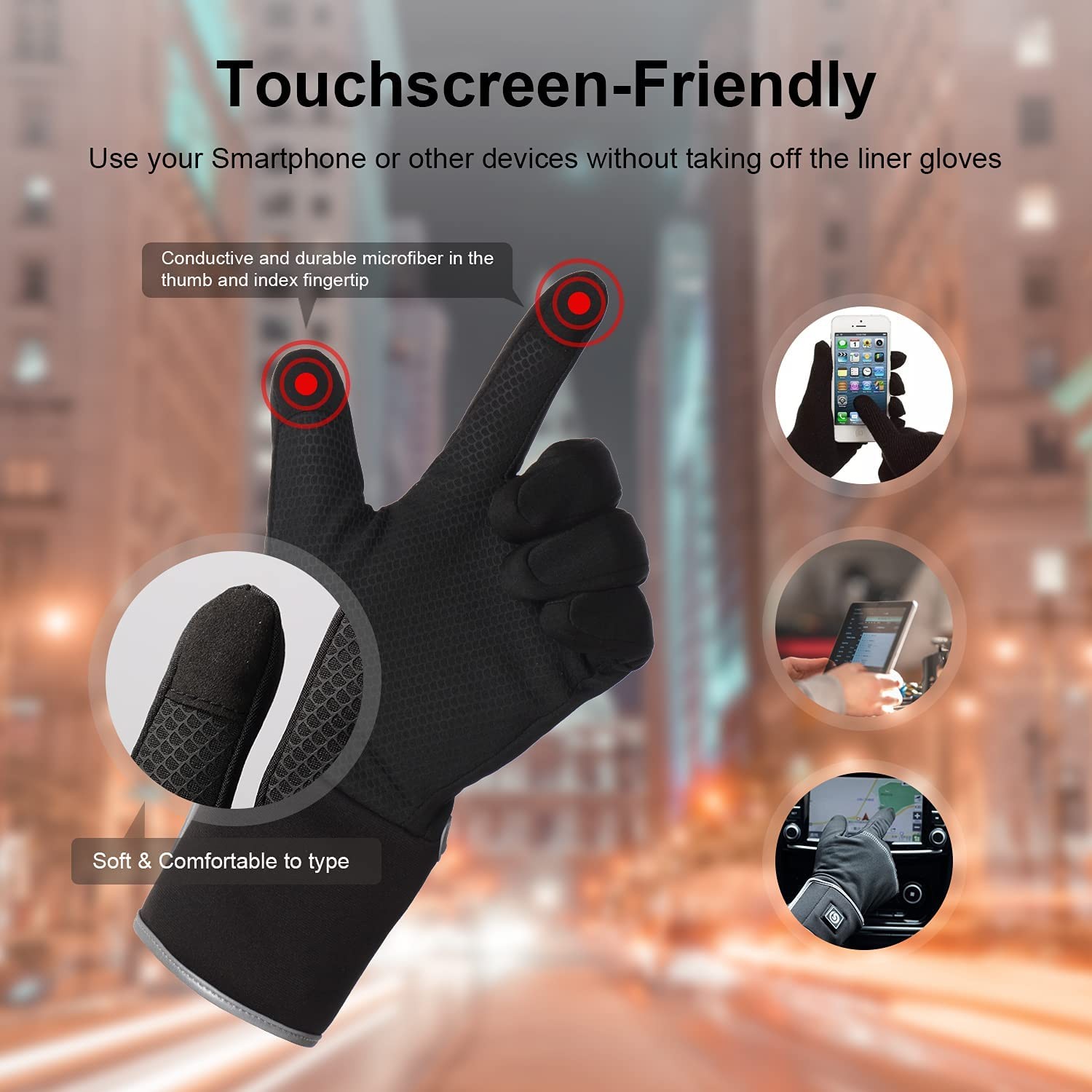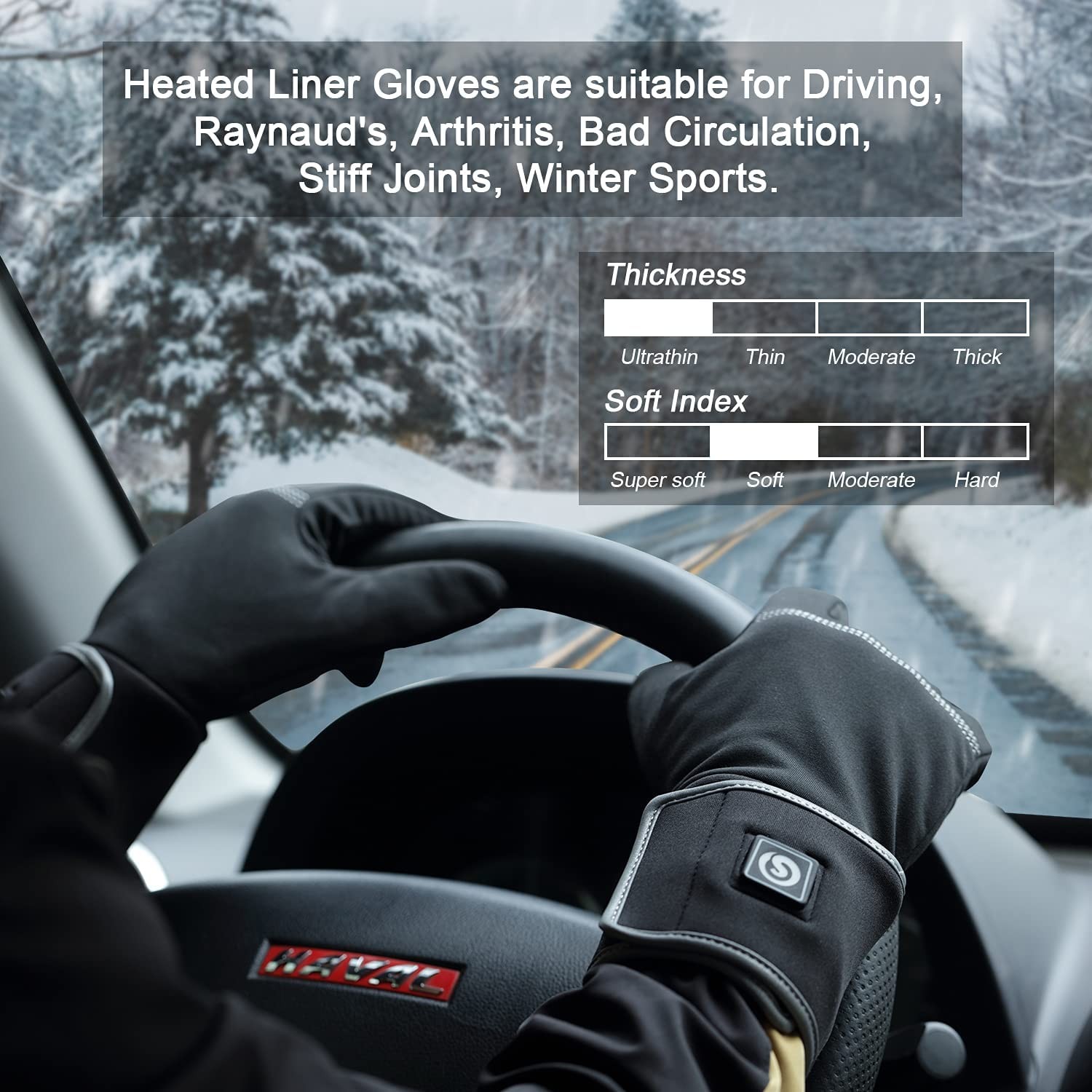 【Soft, Comfort, Durable, Thin Liner】Lightweight heated thin liners are soft to deliver comfort and the 4-Way stretchy fabric provides tight-fitting for hands. Newest fiber and Lycra materials whose fabric bulkiness is 12% higher than other fibers, against the static electricity and fabric pilling. The Adjustable Velcro offers the more comfortable and durable wearing experience than other brands