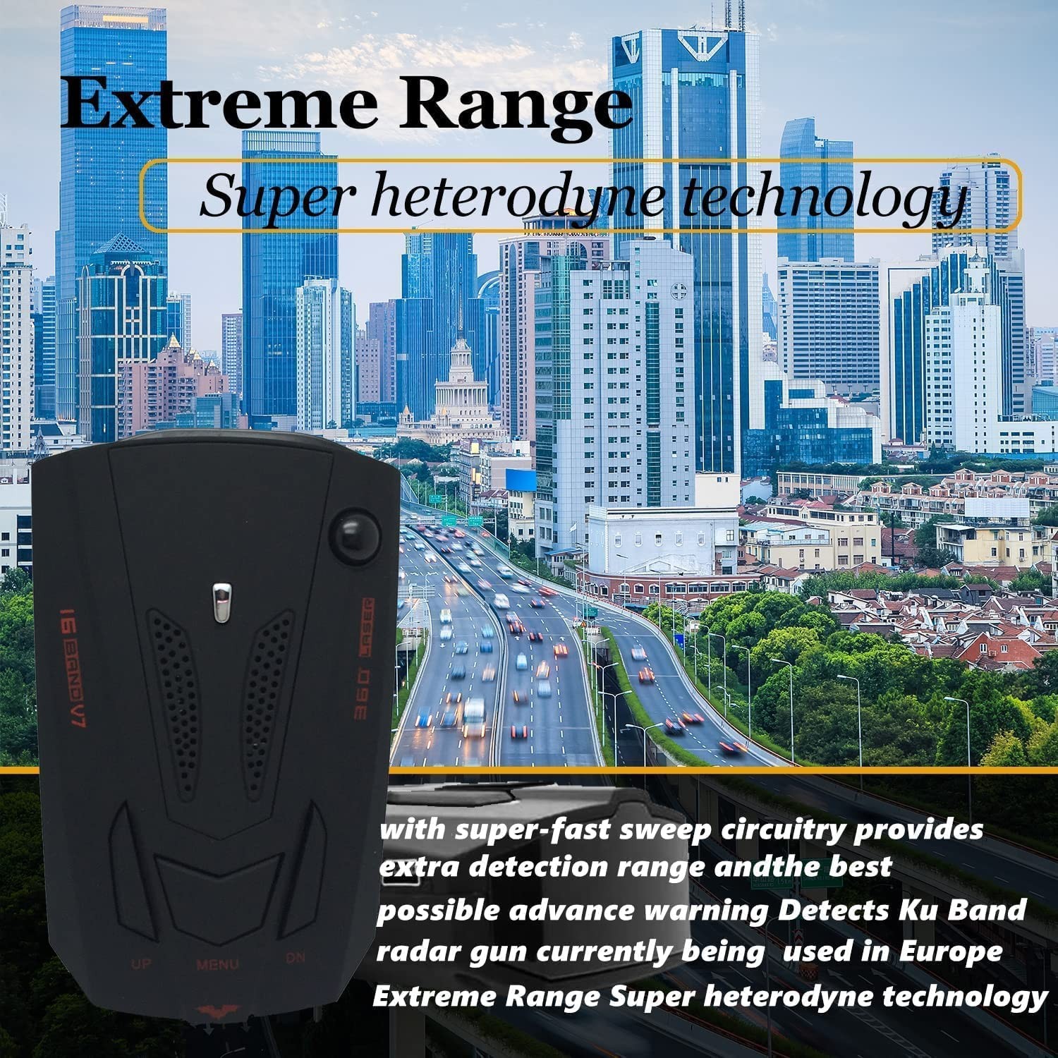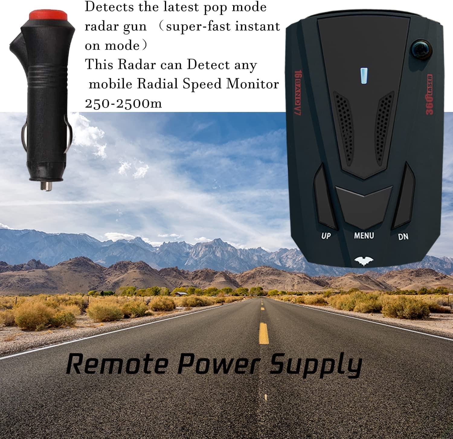 【Extreme Range Super Heterodyne Technology】Auto 360 degree detection with super-fast sweep circuitry, provides extra detection range and the best possible advance warning to even the fastest radar guns Detects Ku Band radar gun currently being used in Europe Extreme Range Super heterodyne technology, with super-fast sweep circuitry, provides extra detection range and the best possible advance warning to even the fastest radar guns. 【Wide Detection Range】Detector the latest pop mode radar gun (super-fast instant on mode) This Radar can Detect any stable or mobile Radial Speed Monitor 250-2500m ahead 【Advanced System】Relative speed sensing auto mute system that virtually eliminates false alerts and shutdown feature will render your detector undetectable by currently available radar detector-detectors. 【Quick Response】When you detect a position, the radar detector will tell you by make a sound to show you are approaching speed detection device, so you can confirms the your speed on the stretch of road.Provides complete immunity to VG-2 radar detector-detectors; Electronically remembers radar detector setting for an indefinite period of time even with the power removed. 【Risk-Free Attempt】Comes with 1 x Detector, 1 x Power Cord, 1 x Anti-Slip Mat and the package box with user guide; We are committed to providing you with high quality security products.
