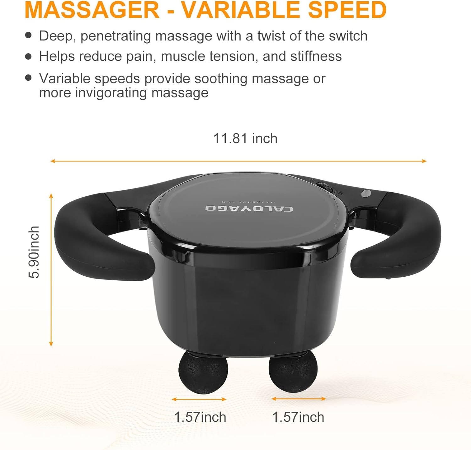 - CALOYAGO Hand held back massager is equipped with a 65W ultra-high brushless high-torque motor, which is destined to be extraordinary. Each of its massage heads can output 15-45 pulses per second, which can better adapt to the massage rhythm of different parts, the real deep massage effect, the same action 4 times. It is able to provide powerful massage properties for a long time. You will love every second of it, I promise!
