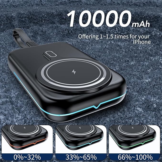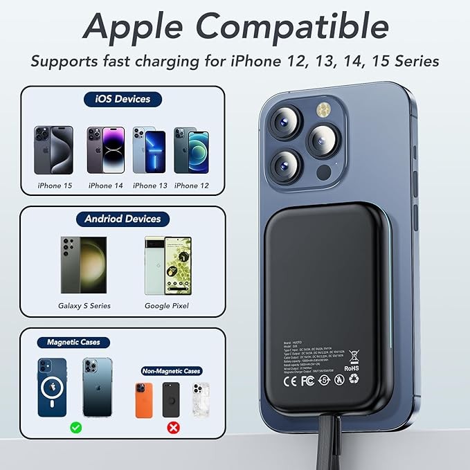 • 10000 mAh High-capacity Rechargeable Battery: HUOTO battery pack adopts the latest magnetic technology, nano adsorption technology can provide more powerful suction. 10000 mAh large capacity battery can charge iphone 12/13 3 times. Smart LED display can show the remaining power at any time, no need to worry about low power