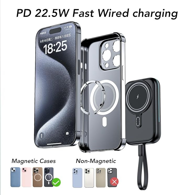 • For iPhone 15/14/13/12 Series Fast Magnetic Charge: Just snap and charge. Its built-in 1500 Gs strong magnets offer a firm attachment to: iPhone 15, iPhone 15 Plus, iPhone 15 Pro, iPhone 15 Pro Max, iPhone 14, iPhone 14 Plus, iPhone 14 Pro, iPhone 14 Pro Max, iPhone 13, iPhone 13 mini, iPhone 13 Pro, iPhone 13 Pro Max, iPhone 12, iPhone 12 mini, iPhone 12 Pro, and iPhone 12 Pro Max, and keep the phone in place while you charge.【Note: Magnetic charging function is ONLY compatible with iPhone 15 14 13 12 series】