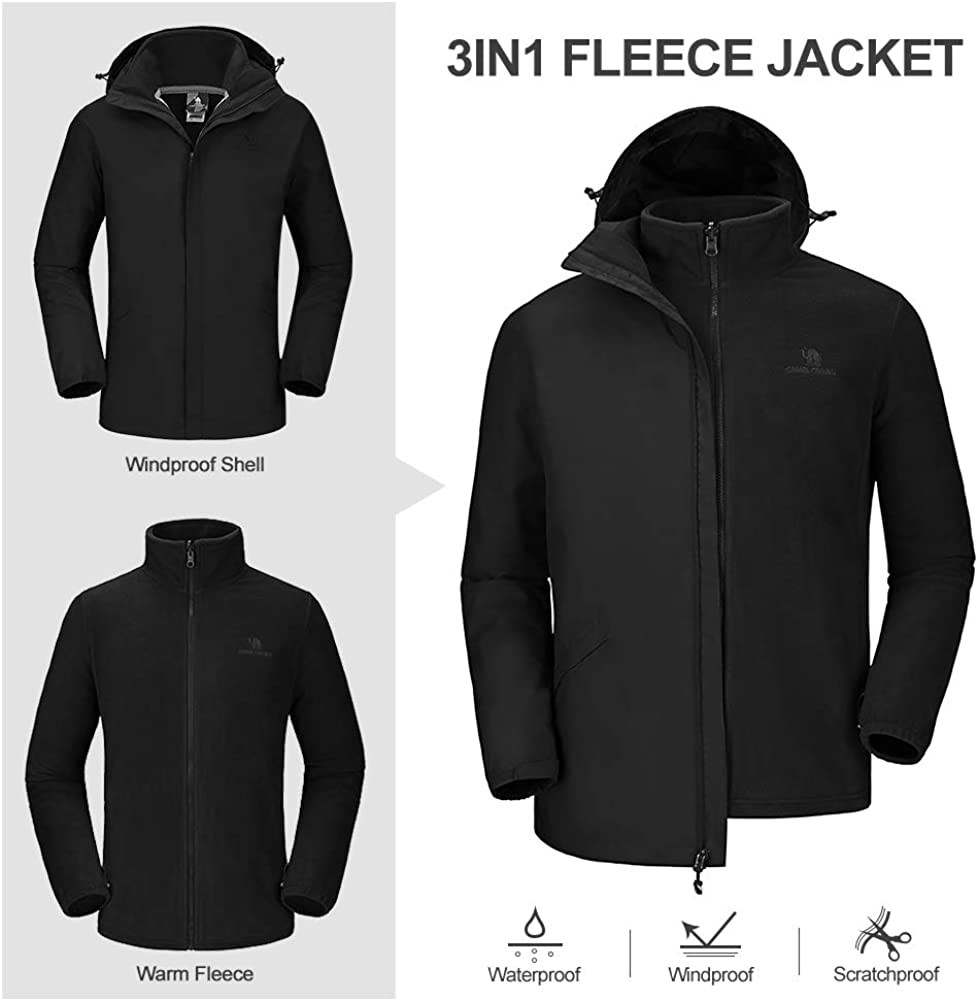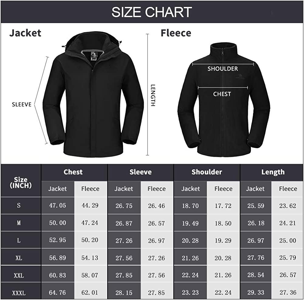 进口 Zipper closure ★3-in-1 Design: CAMEL CROWN waterproof & windproof ski jacket set combines with waterproof coat and an inner fleece jacket. Soft and Breathable inner fleece jacket makes great heat retention, keeping you warm and comfortable in cold weather outdoor. Both shell outside and inner jacket can be worn respectively or together. ★Waterproof: CAMEL CROWN waterproof & windproof ski jacket waterproof index reach up to 10000mm/H2O. With CAMEL CROWN waterproof rain jackets, seamless zipper and adjustable windproof hook&loop, you can hiking, skiing or snowboarding even on rainy days. ★Windproof: CAMEL CROWN windproof shell adopts both special design and material to reach windbreak effect. The men's ski jackets adopt Teflon material imported from America, effectively obstructing the air intrusion. Well-design of the adjustable cuff with Velcro, adjustable and detachable insulated storm hood, seamless zipper and stand collar helps to keep the wind out. ★Ergonomics Design --- Two zippered hand pockets outside, secure pocket with supporting fixture hole for earphone inside, YKK Bi-directional zippers and buttons for convenient to wear the shell and inner jacket together. ★Anti-Static&Perfect for outdoor activities --- Combined with warm-lock fleece inner jacket and velvet tighter and softer shell, CAMEL CROWN ski jackets for men set with double poly heat system are perfect choice for rock climbing, hiking, mountaineering, tourism, skiing, camping at sunny, snow, wind, cloudy or rainy day.