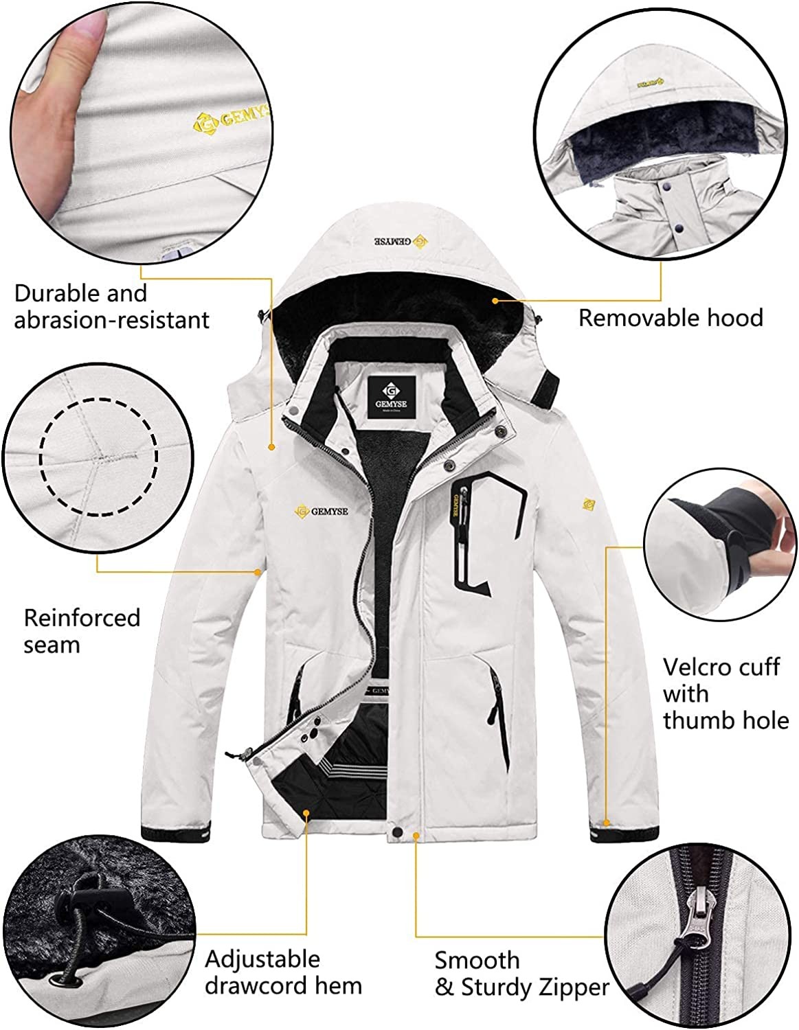 Warm & Durable Snow Jacket: Outer shell fabric is durable & wear-resistant, the inner soft fleece lining is thick enough to keep you warm and comfortable during the cold winter yet breathable to wear. The stitching is reinforced,solid enough to wear for years.