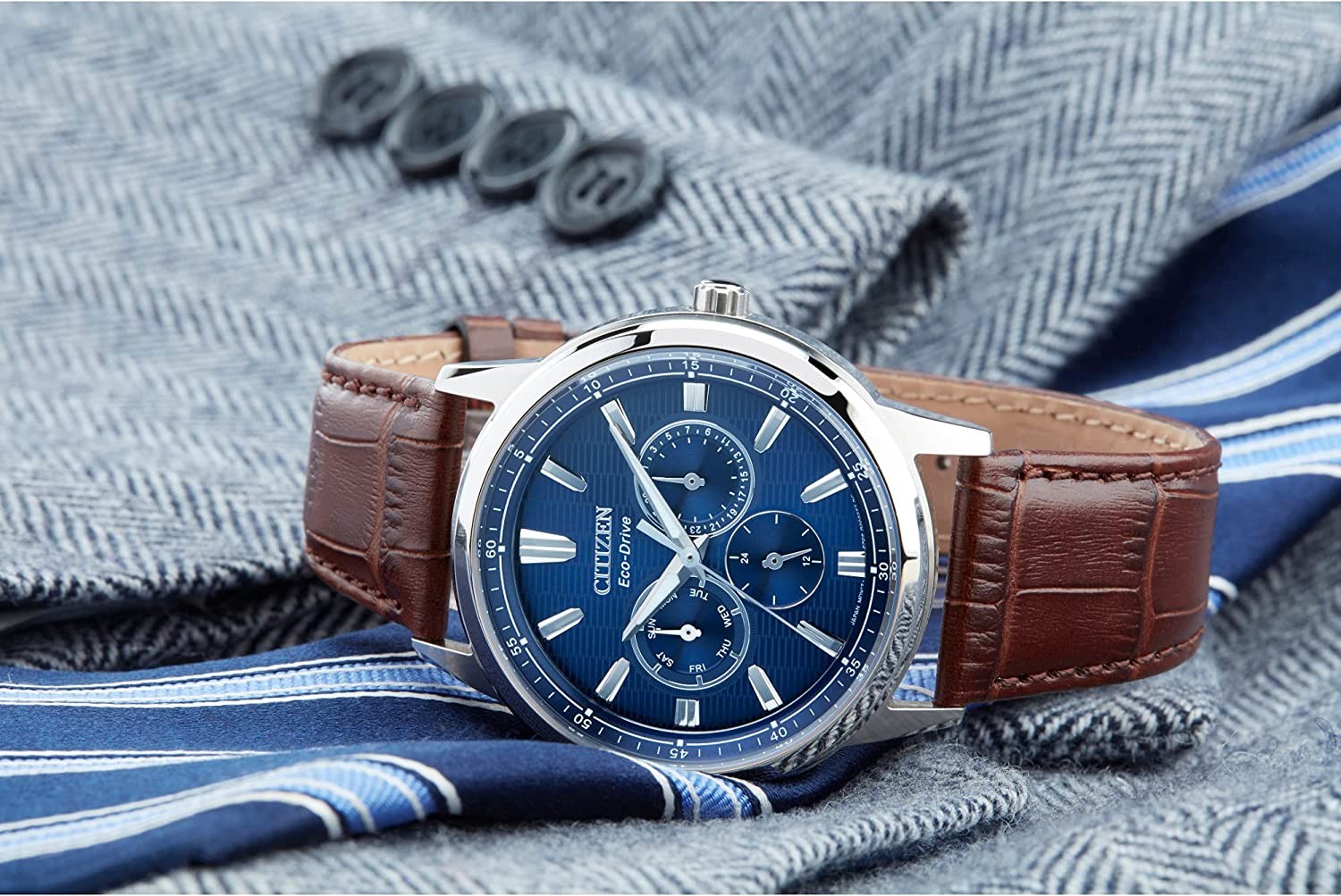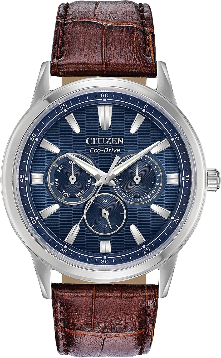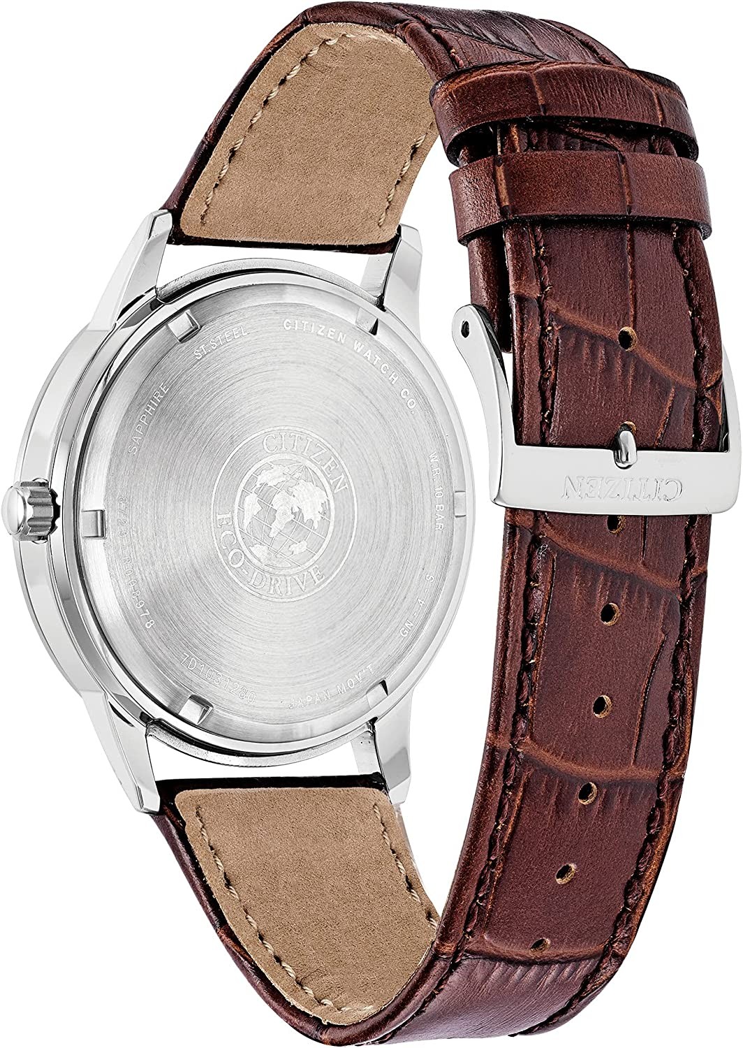Men's Eco-Drive Corso Classic Watch in Stainless Steel with Brown Leather strap, Blue Dial (Model: BU2070-12L)