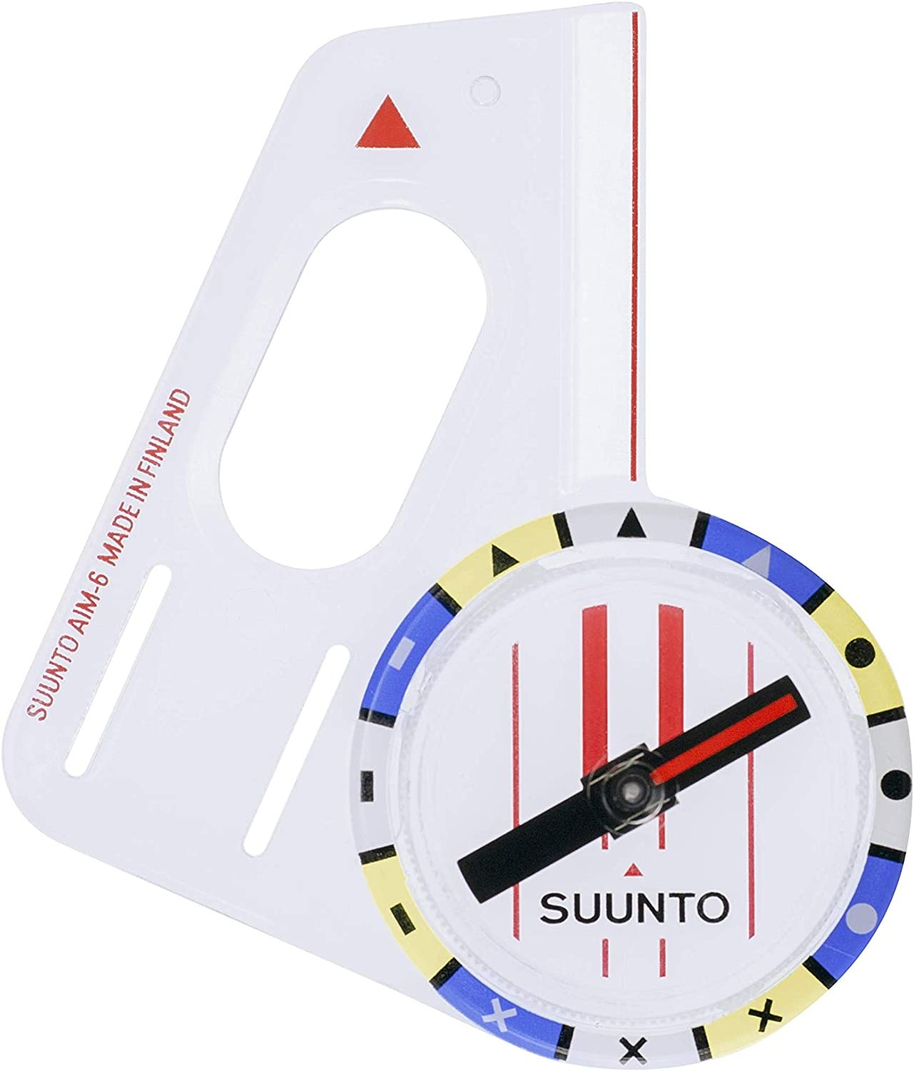 Elite Orienteering Thumb Compass: The AIM-6 compass features an exceptionally stable, visually optimized needle plus specially designed navigation aids for speed and flexibility; Ideal for competitive orienteering Fast And Stable: Balanced for the northern hemisphere use, the AIM-6 includes a thumb strap that allows and allows you to switch easily between orienteering methods; The graphics design is based on visual psychology for high pace orienteering Stay On Course: Made in Finland, Suunto mechanical compasses help you safely and accurately navigate the great outdoors; Great for Alpine skiing, hiking, trekking, mountain biking, trail running and more Pioneering Exploration: Combining advanced engineering and thoughtful design with ultra durable materials, our adventure ready compasses are fast, stable, and simple to use; No batteries required Authentic Heritage: Founded in 1936, Suunto brings over 80 years of high quality heritage craftsmanship, relentless accuracy, and pioneering innovation to our watches, compasses, and dive products