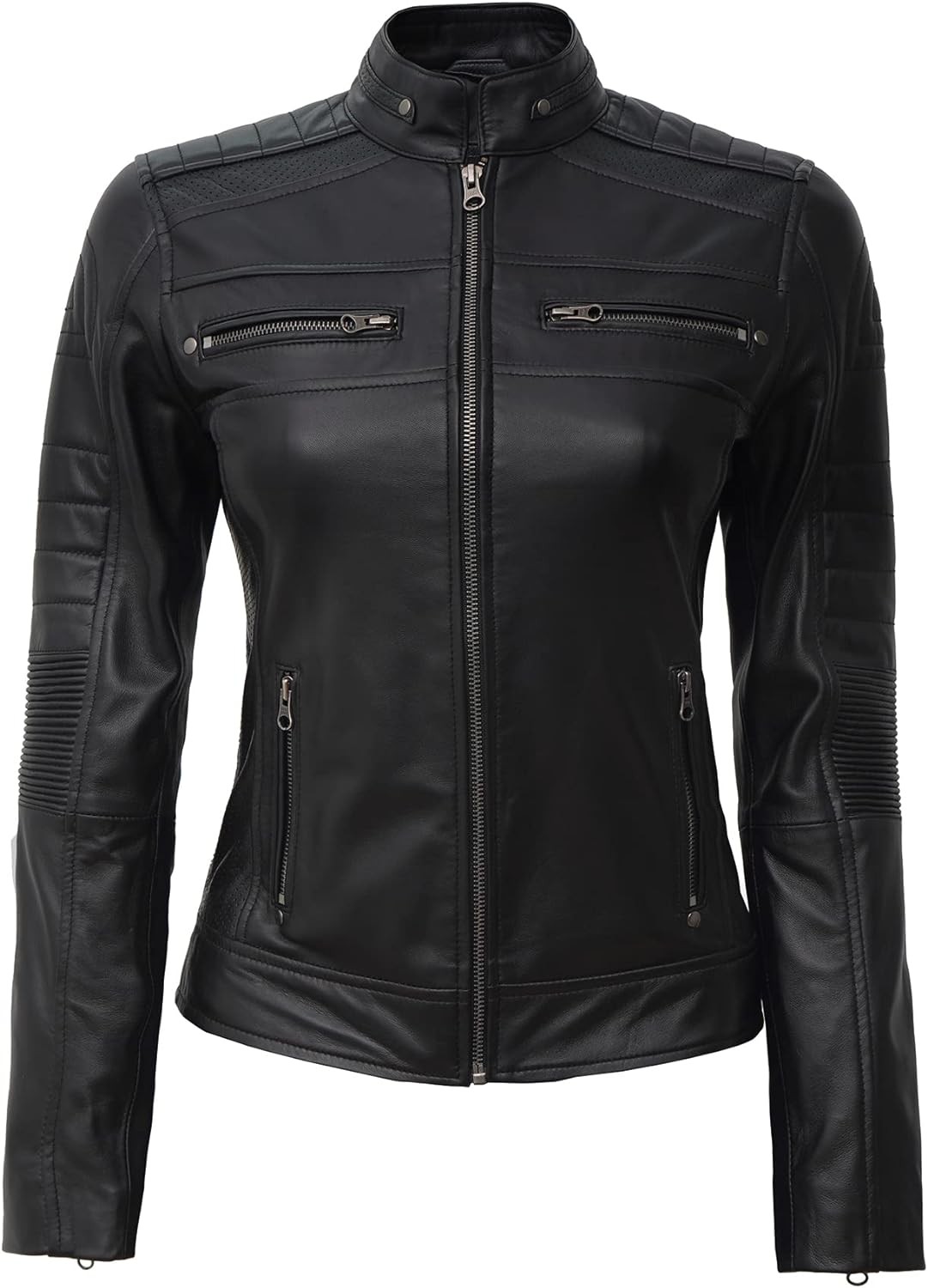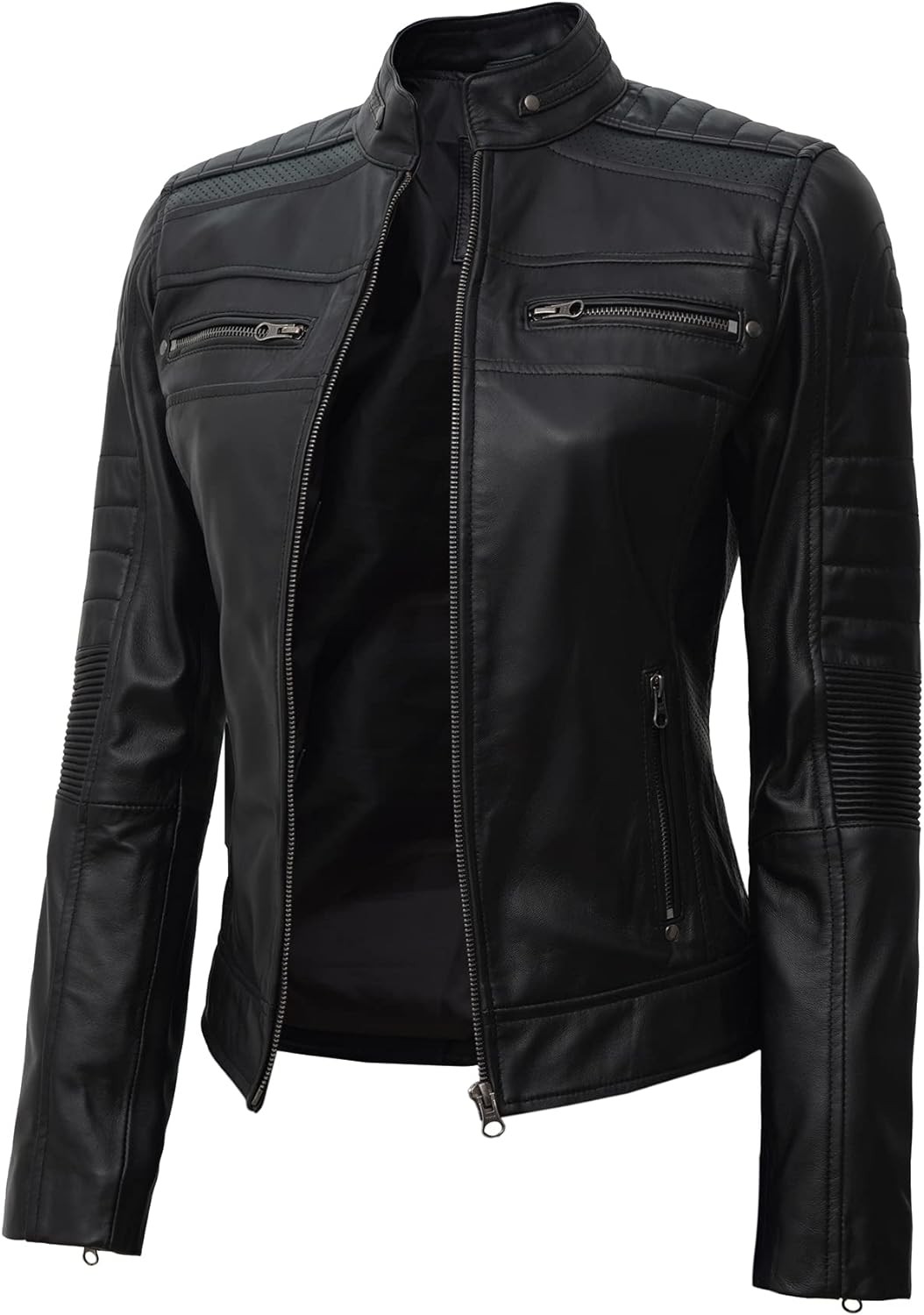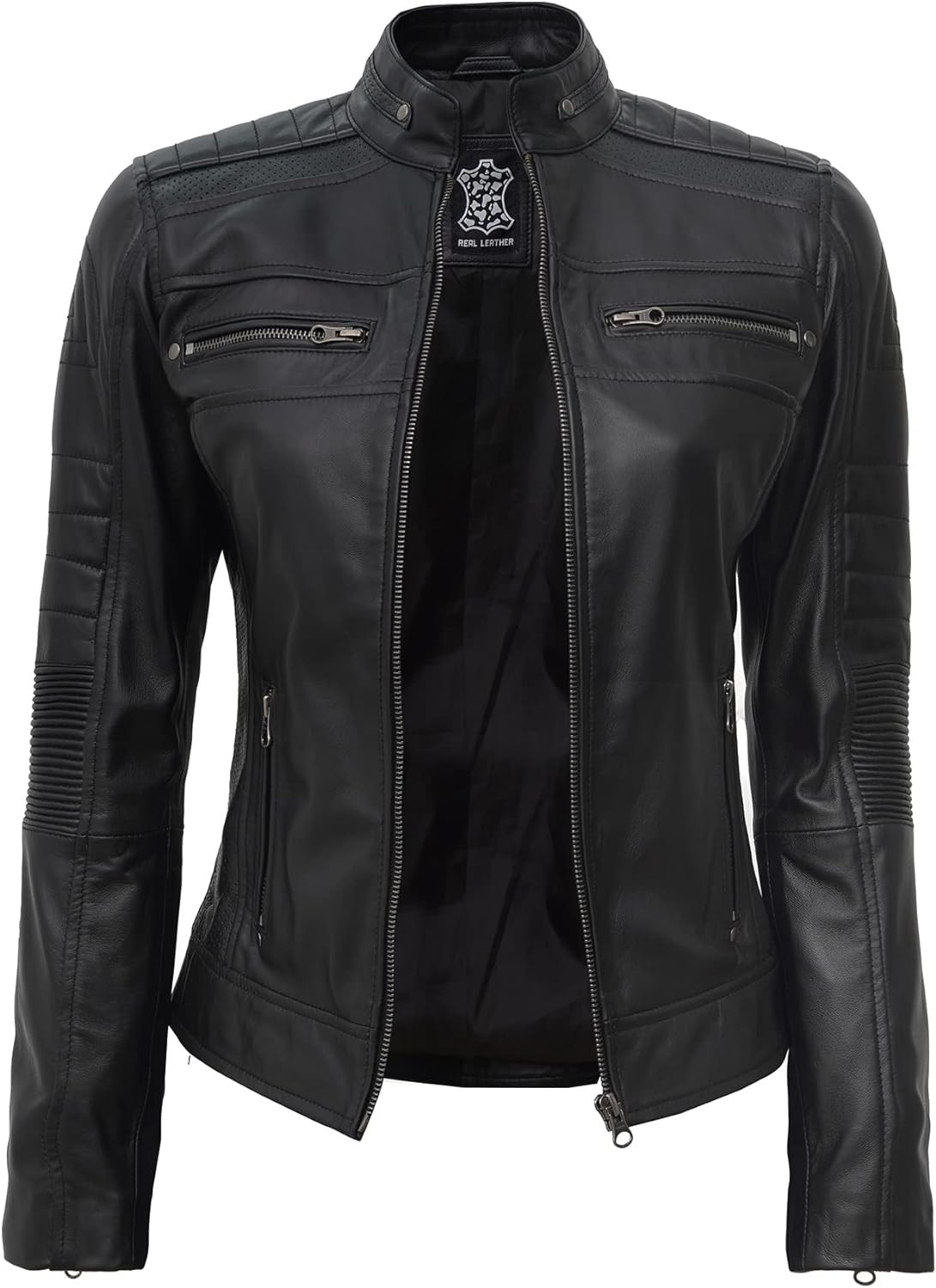 Blingsoul Brown Leather Jacket Women - Cafe Racer Black Womens Leather Jacket