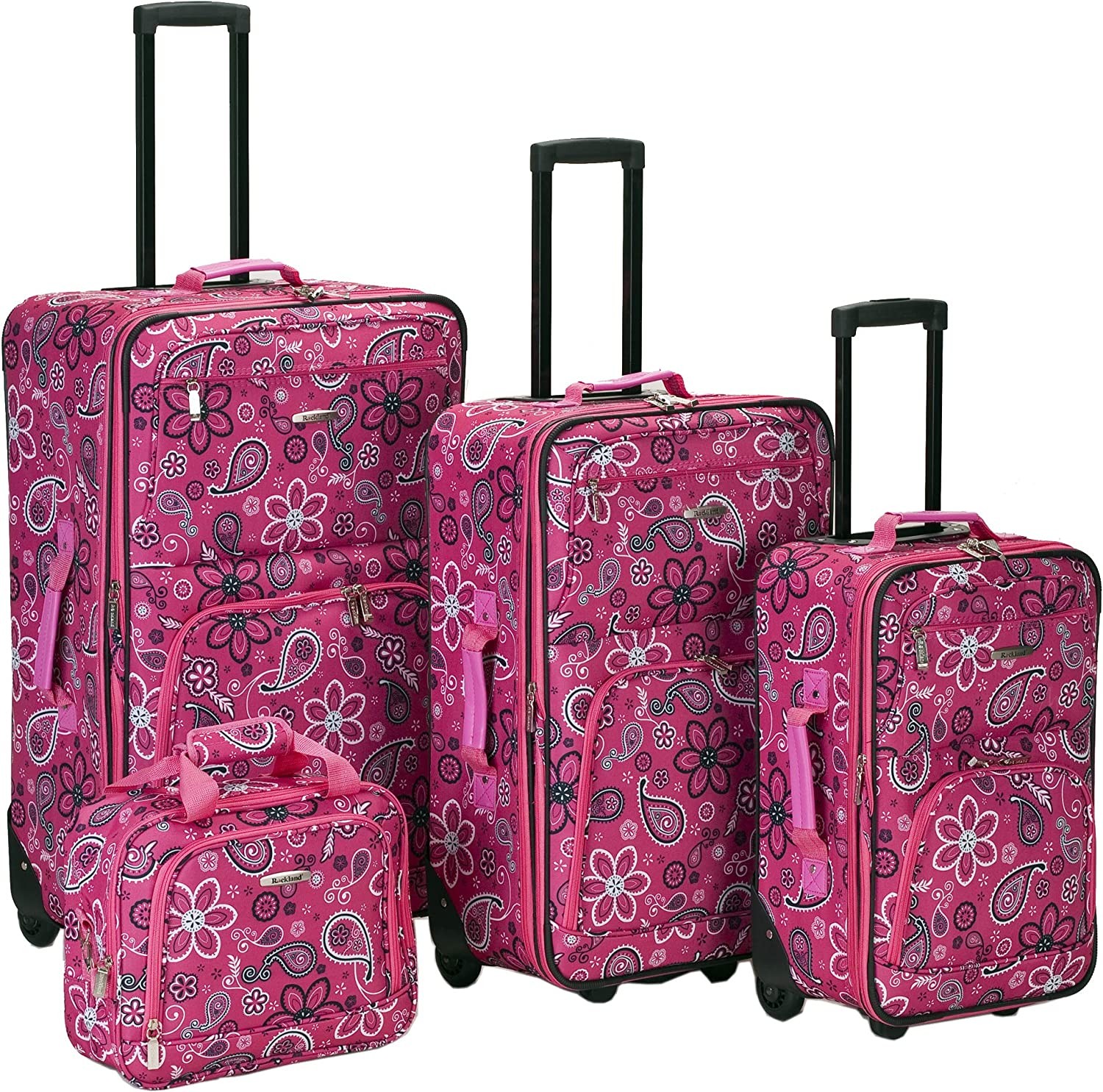 Rockland Impulse 4-Piece Softside Upright Luggage Set, Pink Bandana, (14/19/24/28)