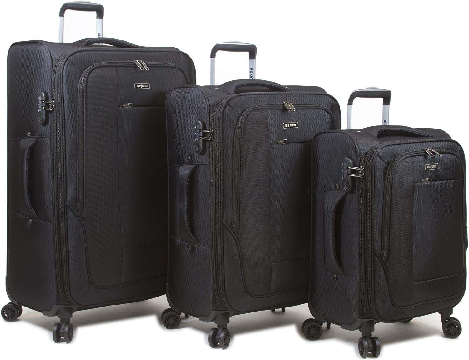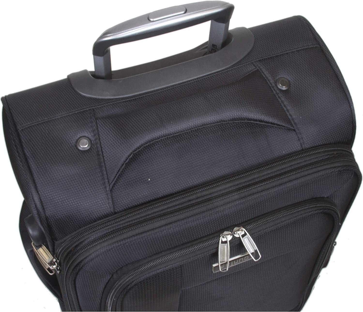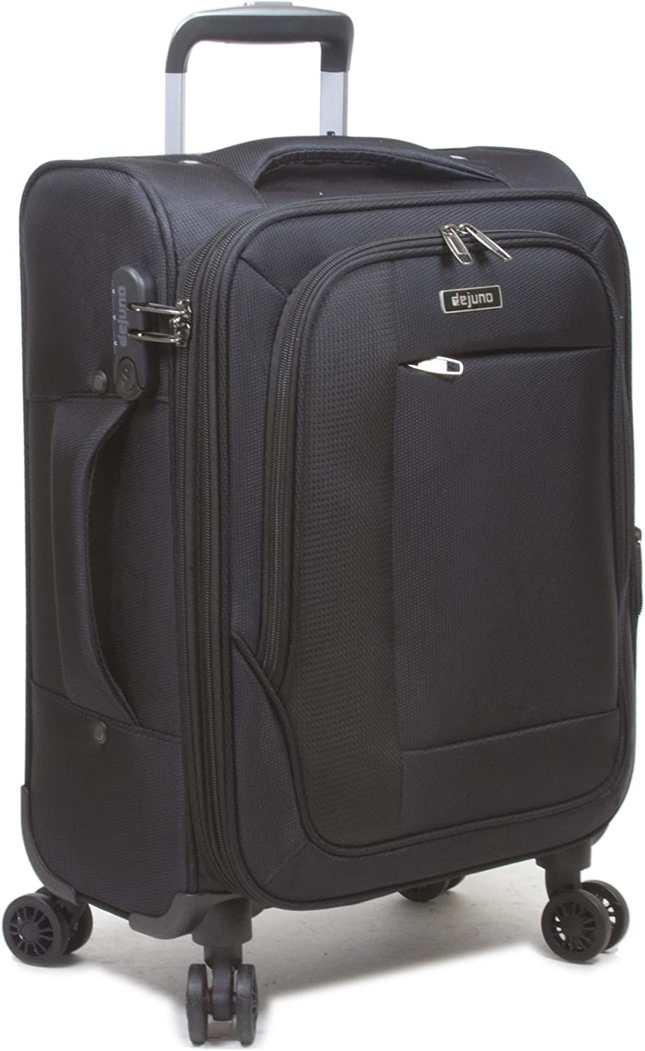 Durable Nylon construction, Deluxe 8-wheel Design for 360° navigation, Telescoping push-button handle system Expands two inches for more packing capacity, 3-digit combination lock (Non-TSA), Fully lined interior features a zipper divider, Large mesh zipper pocket, and compression straps Carry-On Dimensions: 20" H x 14" L x 8" W - 5.8 lb (22"H including Wheels) 24-inch Upright Dimensions: 24" H x 16" L x 9.8" W - 7.2 lb (26" H including wheels) 28-inch Upright Dimensions: 28" H x 18" L x 11" W - 9.4 lb (30" H including wheels)
