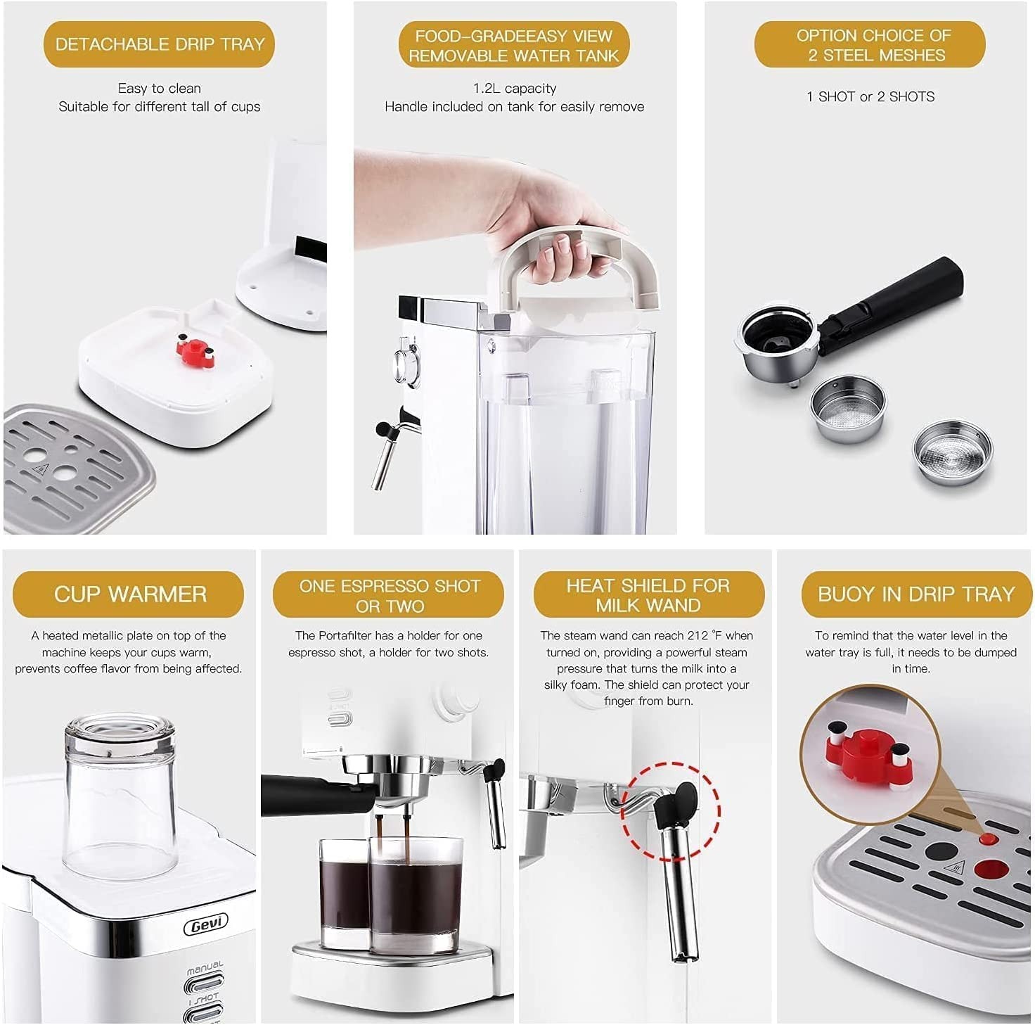 Gevi Espresso Machine 20 Bar Fast Heating Automatic White Espresso Machine with Milk Frother Cappuccino Maker for Espresso, Latte, Macchiato, 1.2L Water Tank, 1350W, White