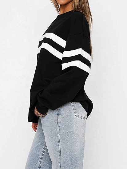 • Striped color block crewneck sweatshirts women - oversized,trendy,soft,and cozy pullover tops,plus size available. Made with soft,lightweight and comfy t-shirt material,these sweatshirts for women trendy are perfect for fall casual daily wear