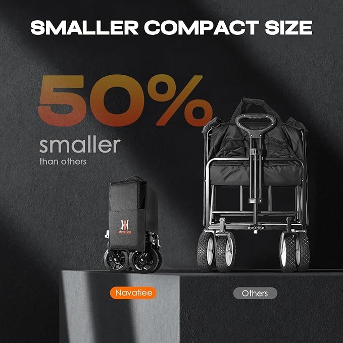 • Navatiee Wagon S1 is roundly upgraded to provide an efficient and simple solution for daily use. The upgraded S1 features 360° rotating front wheels with brakes and a surprise side pocket. You'll have nothing to fear. We are confident in our roundly upgraded wagon S1, which makes it be your lifesaver.