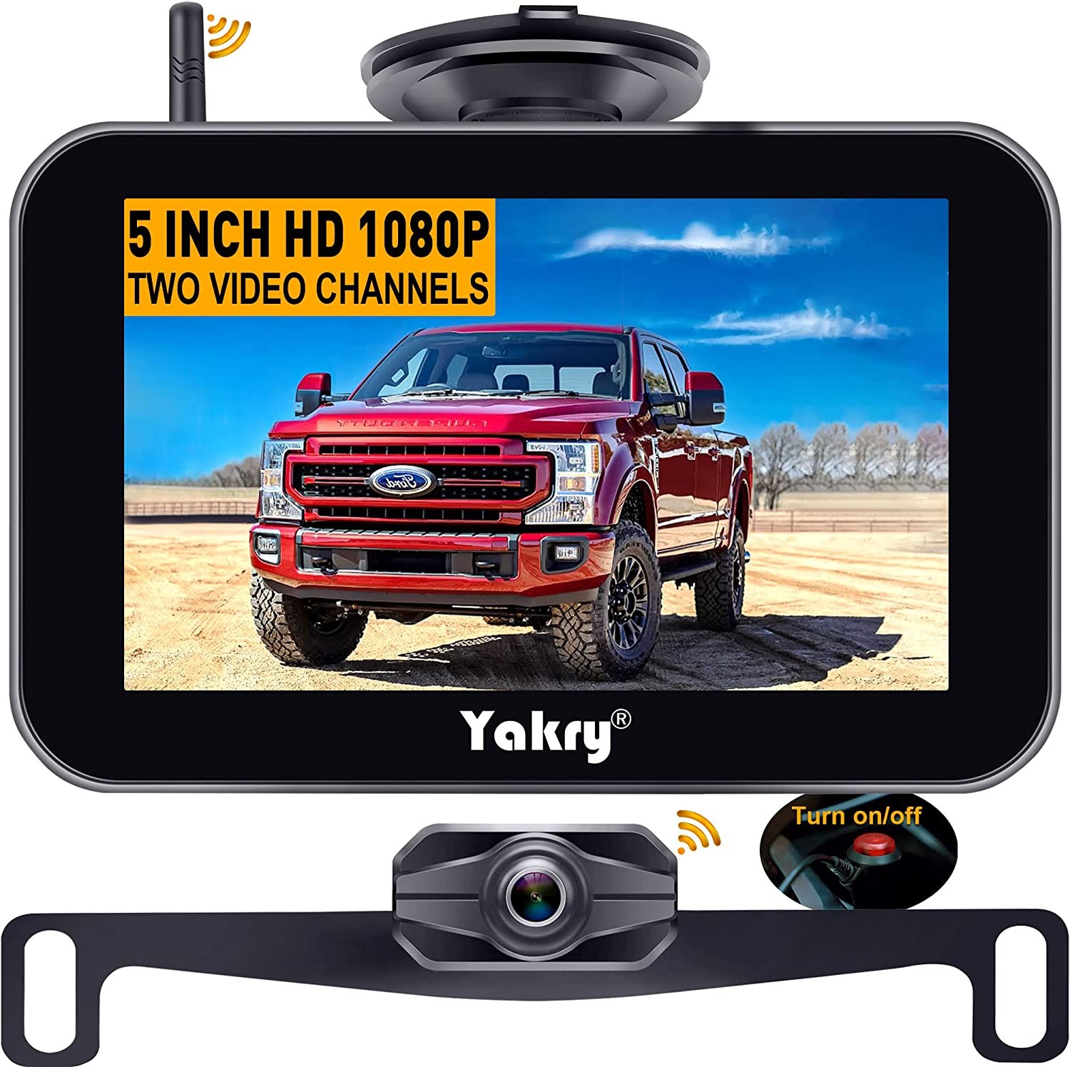 Wireless Backup Camera HD 1080P 5 Inch Monitor 2 Channels Kit System Bluetooth Hitch Rear View Reverse Cam Truck Car Camper RV Minivan Waterproof Night Vision DIY Gridlines Yakry Y24