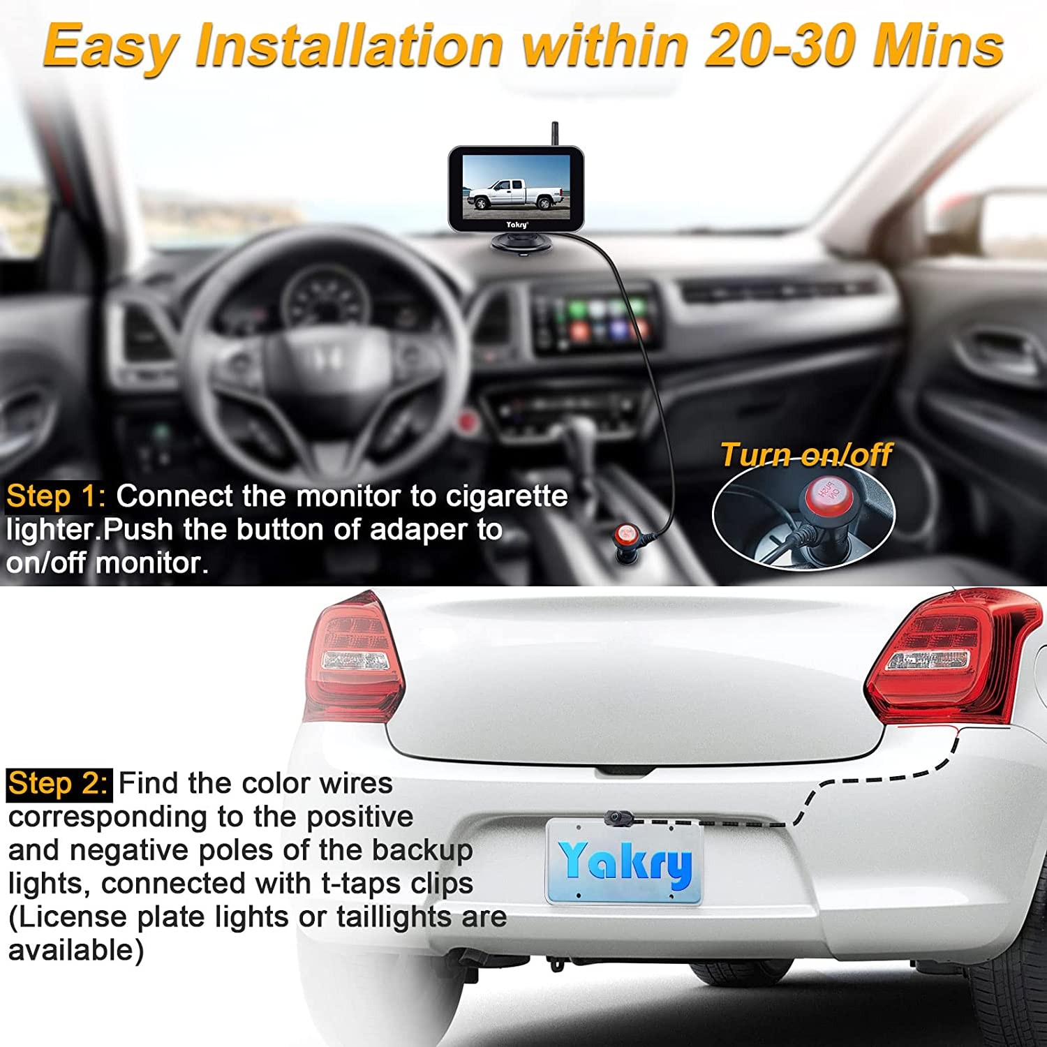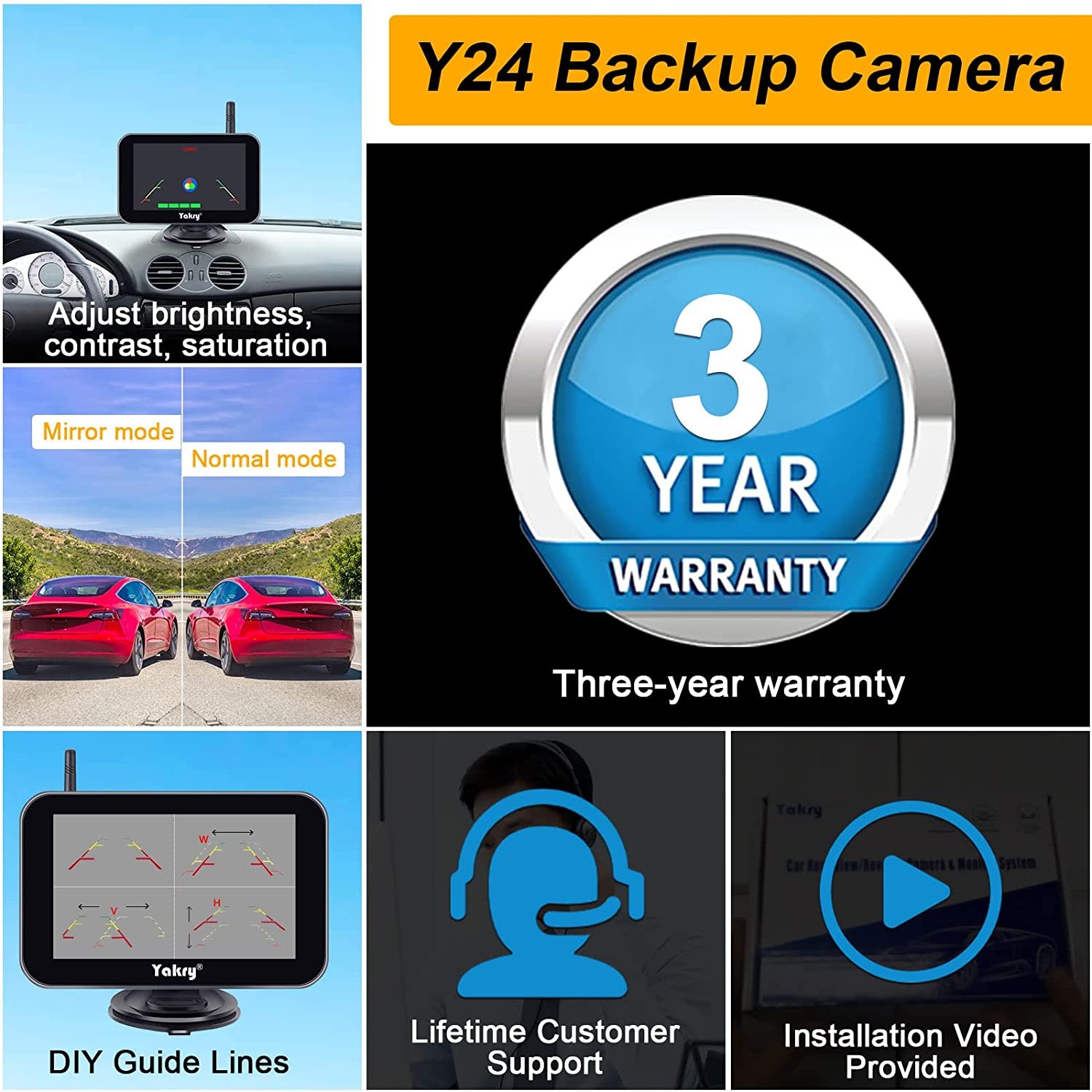 ►【Customer Service】We provide detailed instructions; Yakry provides lifetime technical support, 2-year replacement service and 30-day money back guarantee for each rear camera system.