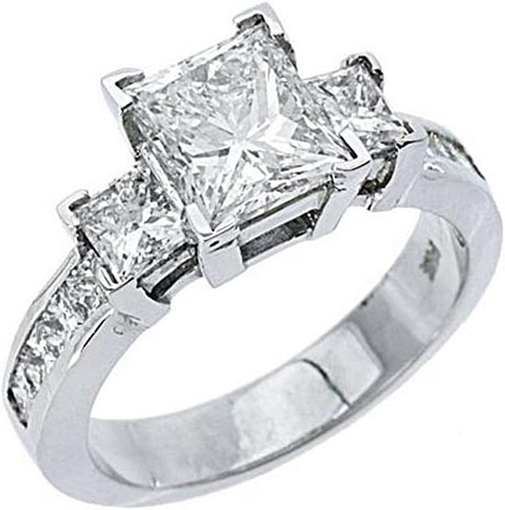 14k White Gold Princess Cut Past Present Future 3 Stone Diamond Ring 3.33 Carats