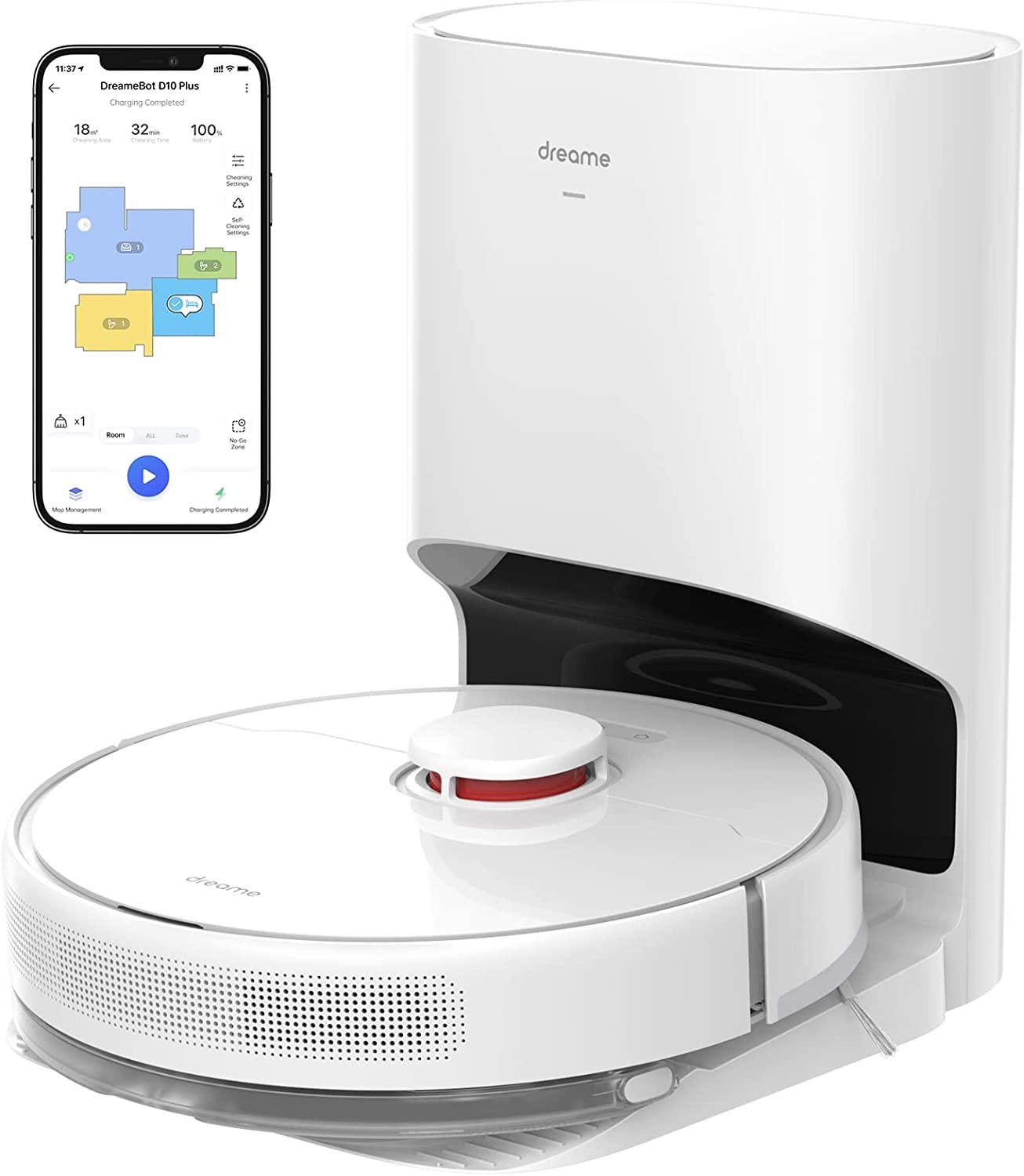Dreametech D10 Plus Robot Vacuum and Mop with Self-Emptying Base for 45 Days of Cleaning, Robotic Vacuum with 4000 Pa Suction and LIDAR Navigation, Compatible with Alexa, Wi-Fi Connected