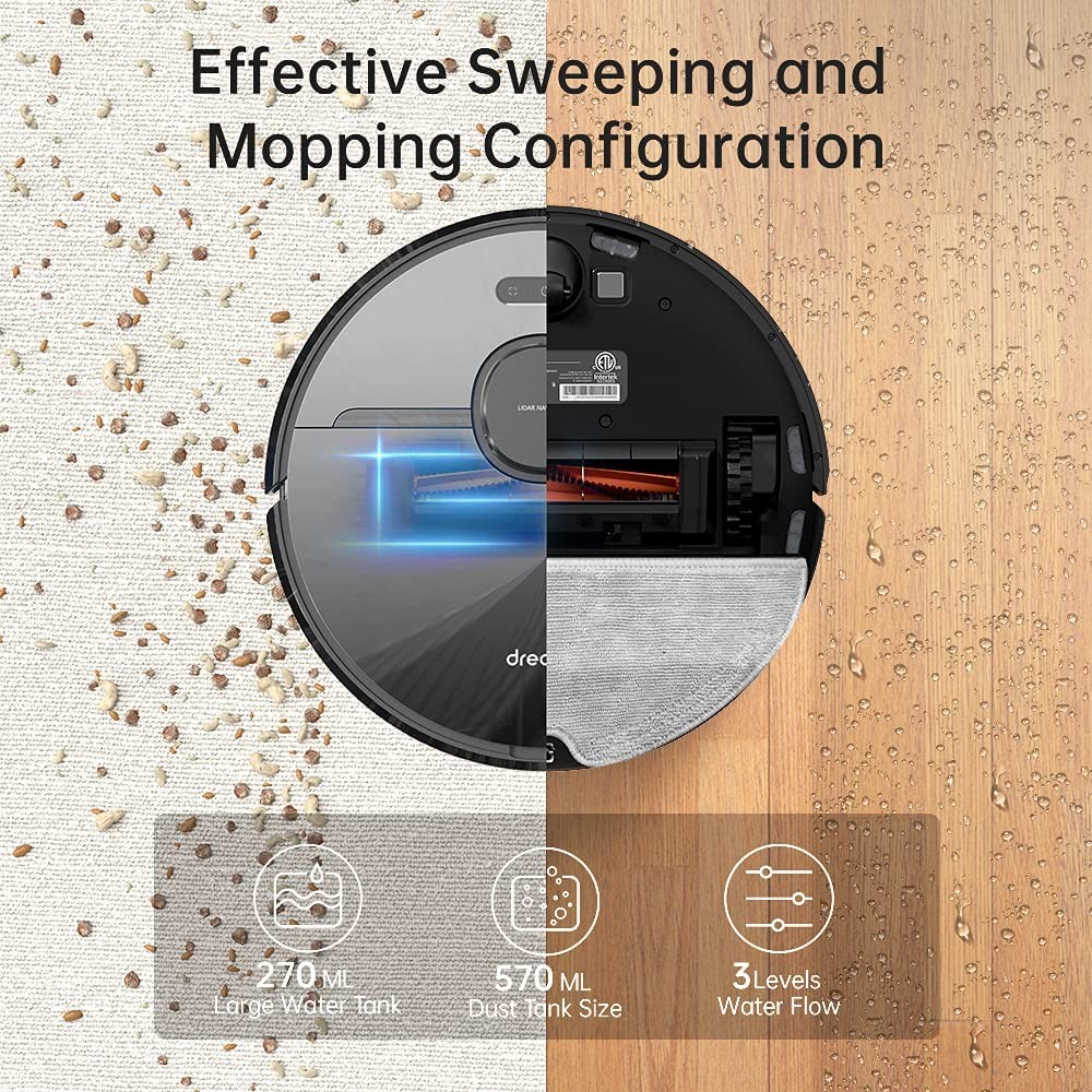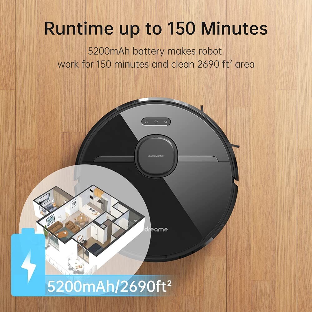 Super Suction Power: 4000Pa of intense suction picks up dirt and messes easily from the surface and deep within carpet;It has 4 levels of suction, you can adjust the level of suction according to the degree of dirt. Smart-Cleaning LiDAR: The advanced Lidar navigation enables better accuracy, faster mapping, stronger performance in bypassing obstacles, and more efficient route planning. Vacuum and Mop 2-in-1: 270ml Large water tank + 570ml Dust tank size + 3 Levels water flows; It can clean your house thoroughly by using effective sweeping and mopping configuration 150 mins Overlong Runtime: The 5200mAh high capacity battery reaches up to 150 minutes of run-time, and it can clean 2690 sqft; and It makes your cleaning last longer Smart App Control: App remote control allows you to adjust suction power, set up virtual walls/restricted areas, etc. Once connected to Echo Dot, the robot responds to your voice orders immediately.