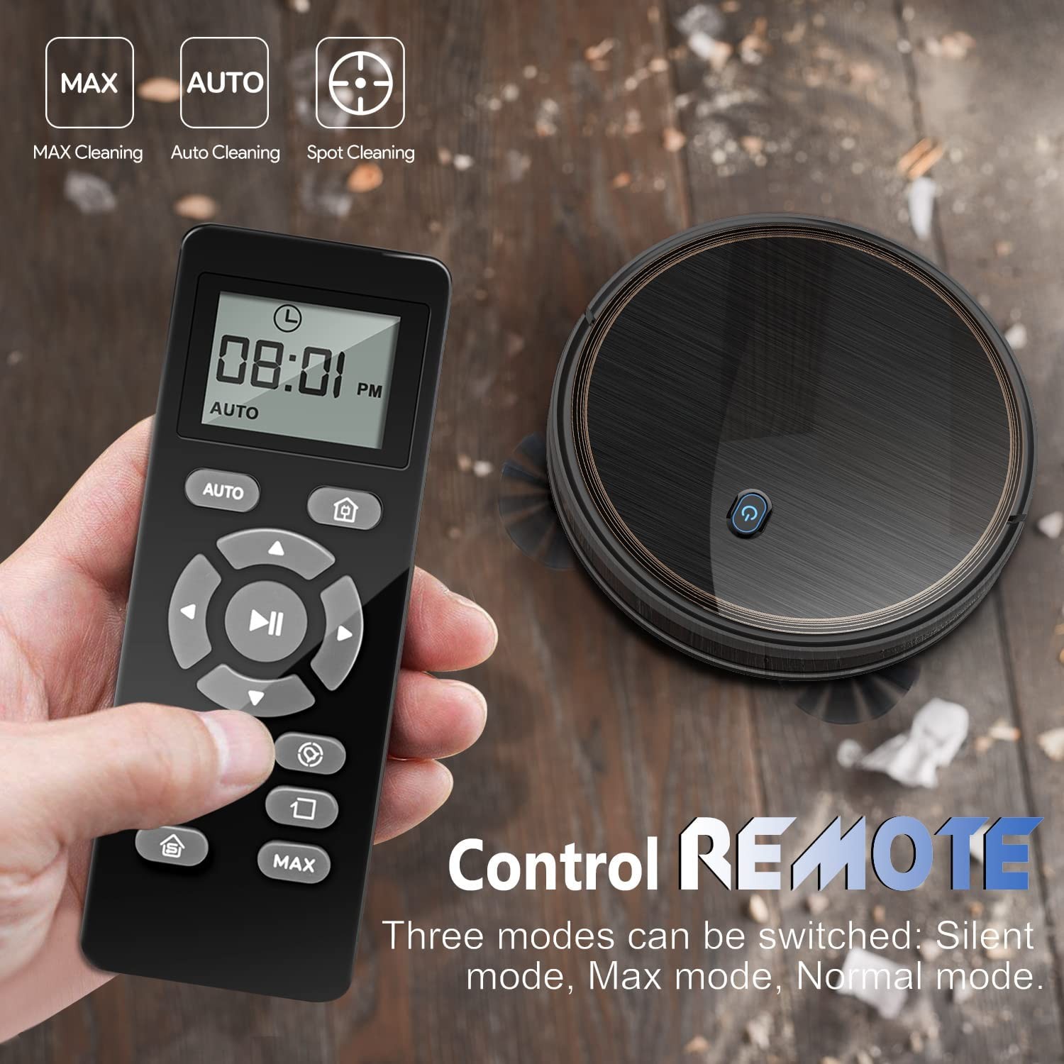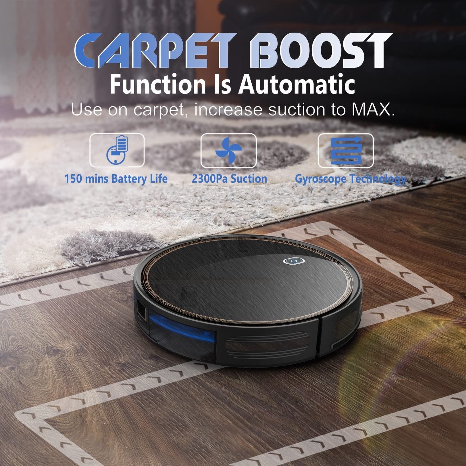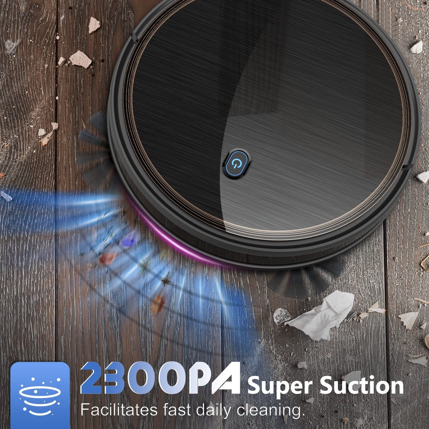 2100PA Powerful Suction Technology : MAX strong suction to absorb dust, debris and dirt. With automatic carpet supercharging function, easy to operate with remote control Intelligent Cleaning System : 2.81 "low-grade design, effectively identify furniture, obstacles and stairs.Has a degree of climb of 12-15 °. 0.5L large-capacity trash storage box, 2600mAh lithium-ion battery Premium Features : The infrared sensor prevents unnecessary collisions, anti-drop technology prevents falls. The automatic automatic charging function ensures that it is always kept clean Smart Cleaning Mode : A variety of optional cleaning modes and Use included magnetic boundary strips to form a vacuuming zone. quiet and noiseless thorough cleaning, make it easy to clean while working, sleeping, or away from home What You Get: 2x 6.6ft magnetic boundary strips, 4x side brushes, 1x extra filter, 1x remote control (2 AAA batteries included), 1x charging dock, 1x AC power adapter, and 1x cleaning tool