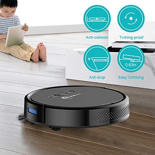 【INTELLIGENT PROTECTION】Automatic vacuum cleaner robot with genius gyro routing to provide efficiency cleaning coverage.Using upgraded anti-collision & drop- Smart sensation technology for enhanced navigation and evading obstacles, to protect the robot from scratches and avoid falling & bumping .