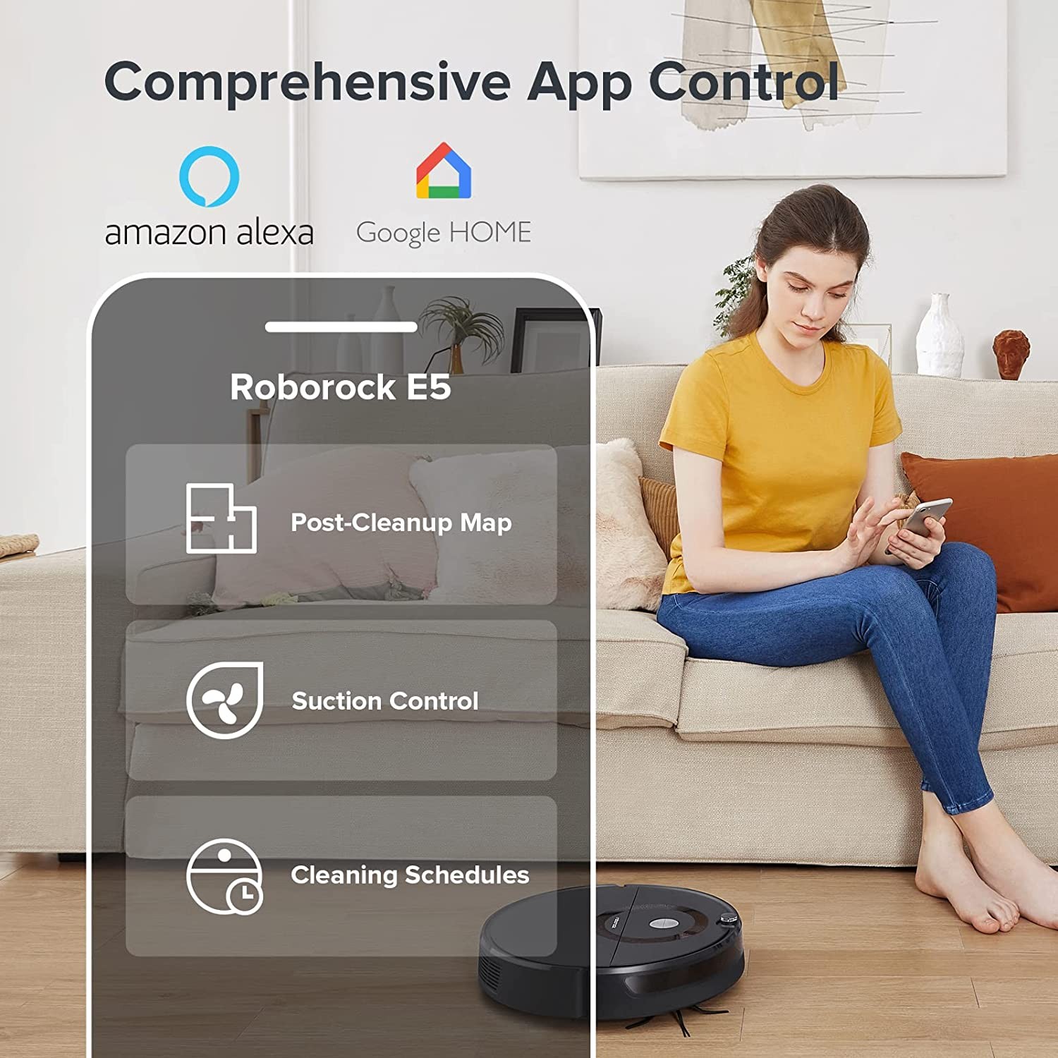 roborock E5 Mop Robot Vacuum and Mop, Self-Charging Robotic Vacuum Cleaner, 2500Pa Strong Suction, Wi-Fi Connected, APP Control, Works with Alexa, Ideal for Pet Hair, Carpets, Hard Floors (Black)