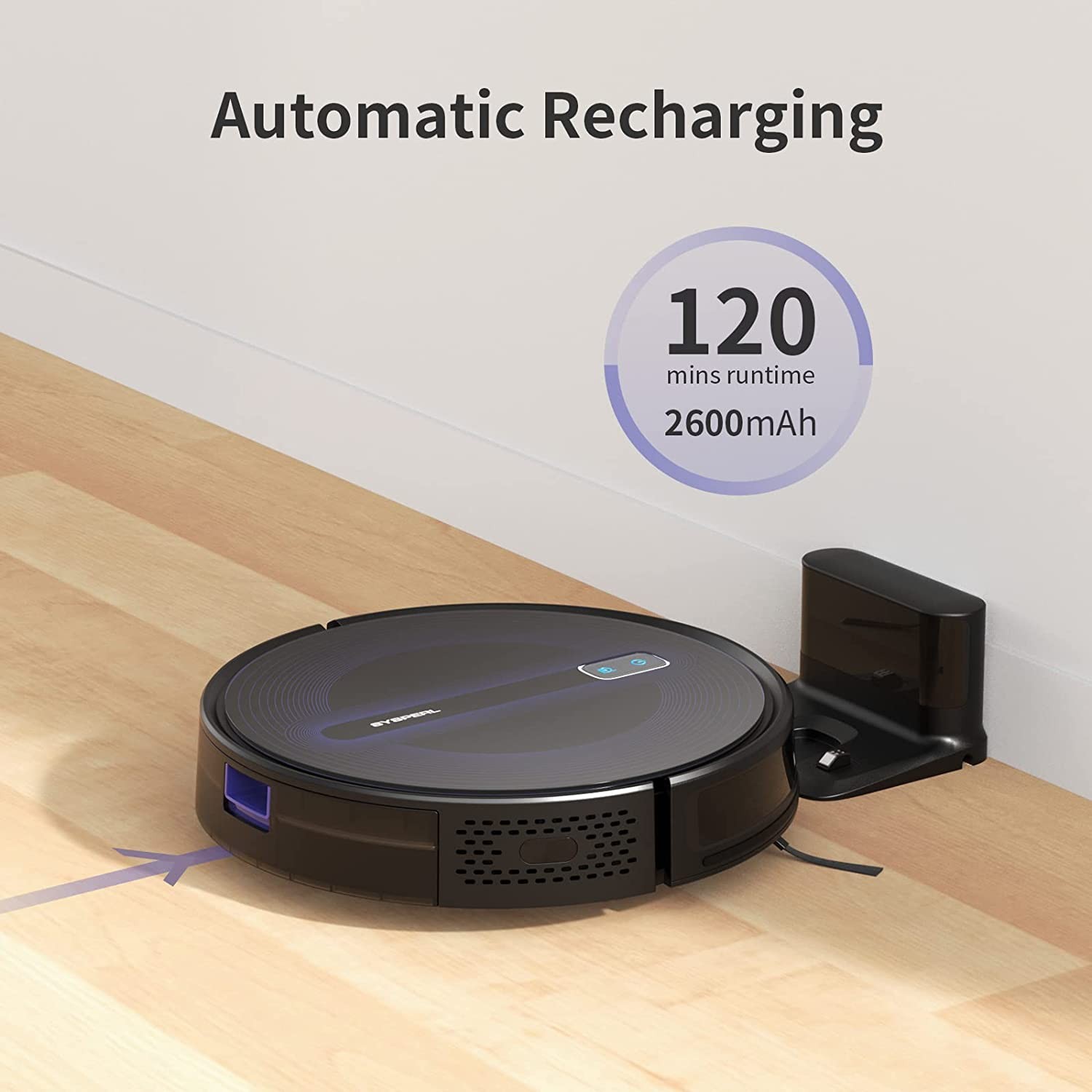 2600Pa Adjustable Strong Suction Robotic vacuum: 2600Pa powerful suction can suck up coffee beans and oat from hard floor,the SYSPERL vacuum cleaner robot can help you effectively pick up pet hair and dust from carpet.Robot vacuum 2 side brushes designed for clean thoroughly and avoid clogging and hair tangles.The robot cleaner great for pet owners.The 3 adjustable levels suction can freely switch to better clean. High-Capacity Battery 2600mAh & Self-Charging:The SYSPERL automatic vacuum uses lithium iron have a longer life,better safety. The sweeping robot up to 120Mins runtime about 150 sqft and vacuum robot cleaner will go back to the charging base automatically when run out of battery or finish cleaning. 4 Cleaning Modes Meet Your Needs:self vacuum cleaner robot supports 4 clean modes including Auto cleaning mode, Spot cleaning mode, Edge cleaning mode and Manual control clean mode to meet different cleaning needs.The self cleaning vacuum robot built-in Anti-bump and Anti-fall sensors so you don't need worry about your robot vaccumaccum falling down stairs or hit other furniture. Work with Alexa Voice&App&Remote:V40P robot vacuum cleaner compatible with Alexa and Google Assistant, conveniently start and stop cleaning by voice commands. Use Tuya smart App,You can easily set clean schedules, choose the clean mode, change the clean direction, finds your home robot effortlessly.Use V40P vacuum robot to save you time and energy! Boost-Intellect Technology: V40P cleaning robot supports boost-intellect technology, which can automatically increase suction power within seconds to help moves easily from hard-surface floor to carpet , once off the carpet, normal suction returns.Auto vacuum cleaner robot floating roller brush design enable smart vacuum close to the surface for an impressive clean.