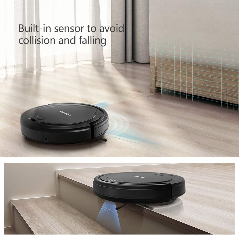 ➊【Easy to Operation☞☞】 Experobot K5AV robotic vacuum cleaner with One button press to start working, and plug the pin power connector in to charge. Use the K5AV is simple and straightforward.(Basic Series Cleaner: without charging station and remote control,panel one button to charging) ➋ 【Pets Friendly Partner☞☞】Cute K5AV vacuum cleaner with sensitive sensors . It can detect all home moving pets,and otherwise cleaner without add main rolling brush design,it will more safer to prevent pets hair getting involved into the main rolling brush. ❸【Ideal for Hardfloor.No good Carpet ☞☞】Hardfloor and low carpet will the best choice,vacuum mouth anti all kinds of long hair entangle, carpet less than 0.5cm will be fine, it is no good for long hair carpet.We don't suggest those customers use this cleaner in long hair carpet,if want clean long hair carpet, pls choose our MasterClean X5/X7. ➍【1500mAh li-ion Battery ☞☞】Basic K5AV Robot Vacuum with 1500mAh Li-ion Battery,2-3 hours fast time adapter charging,working time on the hardfloor can up to 85-90min in once time. ❺【What’s IN BOX☞☞】1 PCS * K5AV Cleaner; 1PCS* Adapter;2 Pair * Side Brushes;2PCS Filter,1PCS *Operation manual ❻【Sensitive & Safe Sensors ☞☞】MINI K5AV cleaner with auto cleaning path navigation, anti-fall sensors.Allowing robotic Vacuum cleaner avoid obstacles more easily and finished house work efficient. ❼【Dual Rotating Brushes ☞☞】Smart auto robot vacuum cleaner with 2 side brushes,and 1 square suction mouth is combined a efficient daily cleaning system,save more precious time for house work. ❽【Efficient Clean System☞☞】K5AV robot is combined with sweep ,vacuum together.Versatile and ideal for hard floor.Easy to clean dustbin with auto robotic vacuum function. ❾【Super Thin Body Design ☞☞】Robotic cleaner K5AV thickness is only 7.9cm,clean under indoor furniture couch or bed, chairs of our room. Detachable dustbin is easy for debris disposal. ❿【Worry-free Service ☞☞】Production quality. We offer one year of free warranty service and resolve all questions within 24 hours online.Any problems pls let tell our service in first,we promise everything with best solutions.Thanks.
