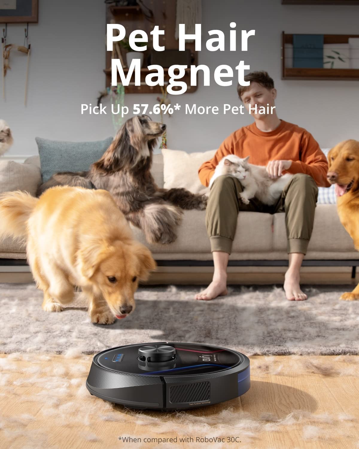 Twin-Turbine Technology: With each turbine generating 2000 Pa of suction power, RoboVac creates up to 80% more airflow* to pick up more dust, debris, and pet hair from every corner of your house. *When compared to eufy´s single-turbine robotic vacuum.