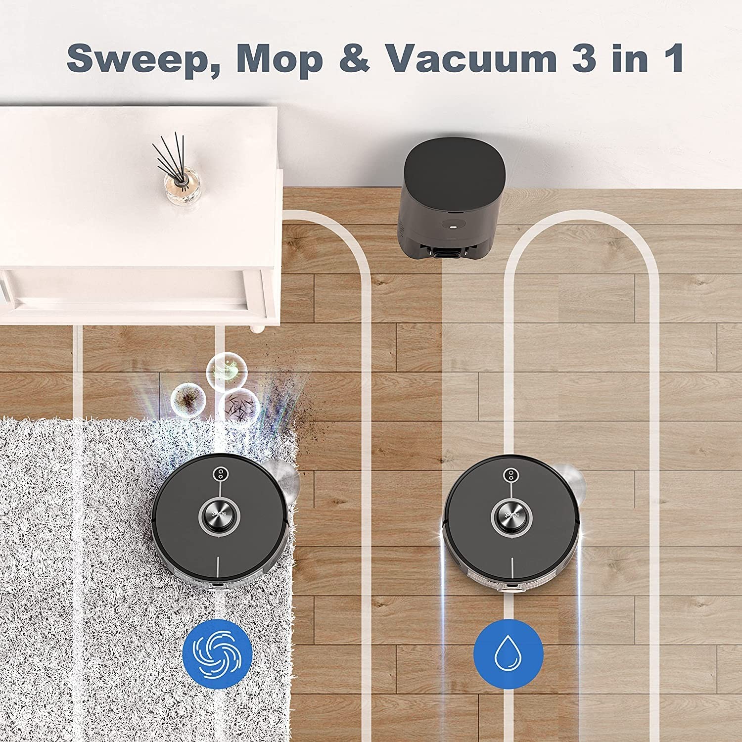 Cleans as if it Sees: With dual-line LiDAR navigation, real-time perception and high precision 3D technology of robotic vacuum accurately identify 100+ obstacles, to minimze bumping or entanglement and keep your automatic cleaning more hands-off Remarkably Deep Cleaning: 4,000Pa of powerful suction easily pulls hair, dirt, and dust up off of floors and from deep within carpet. A versatile roller brush with a set of comb-like bristles in the smart vacuum handle tough dirt and prevent hair from tangling Vacuuming Meets Mopping: Handle tough messes with ease thanks to the combination of the powerful vacuuming and the versatile drag mopping and start coming home to mopped hard floors and vacuumed carpets Just Keeps Cleaning: A 5,200mAh battery delivers up to 150 minutes of continuous cleaning to vacuum a maximum of 2,690ft² or mop up to 2,152ft² on a single charge. (Data obtained from Dreame lab testing. Actual performance may vary.) Take Control: A detailed app puts control at the tips of your fingers. Save multiple maps, divide or merge areas, label rooms, set no-go zones so that certain areas will not be cleaned or mopped, and more. Amazon Alexa compatibility lets you just say the word to start, pause, and stop cleanups