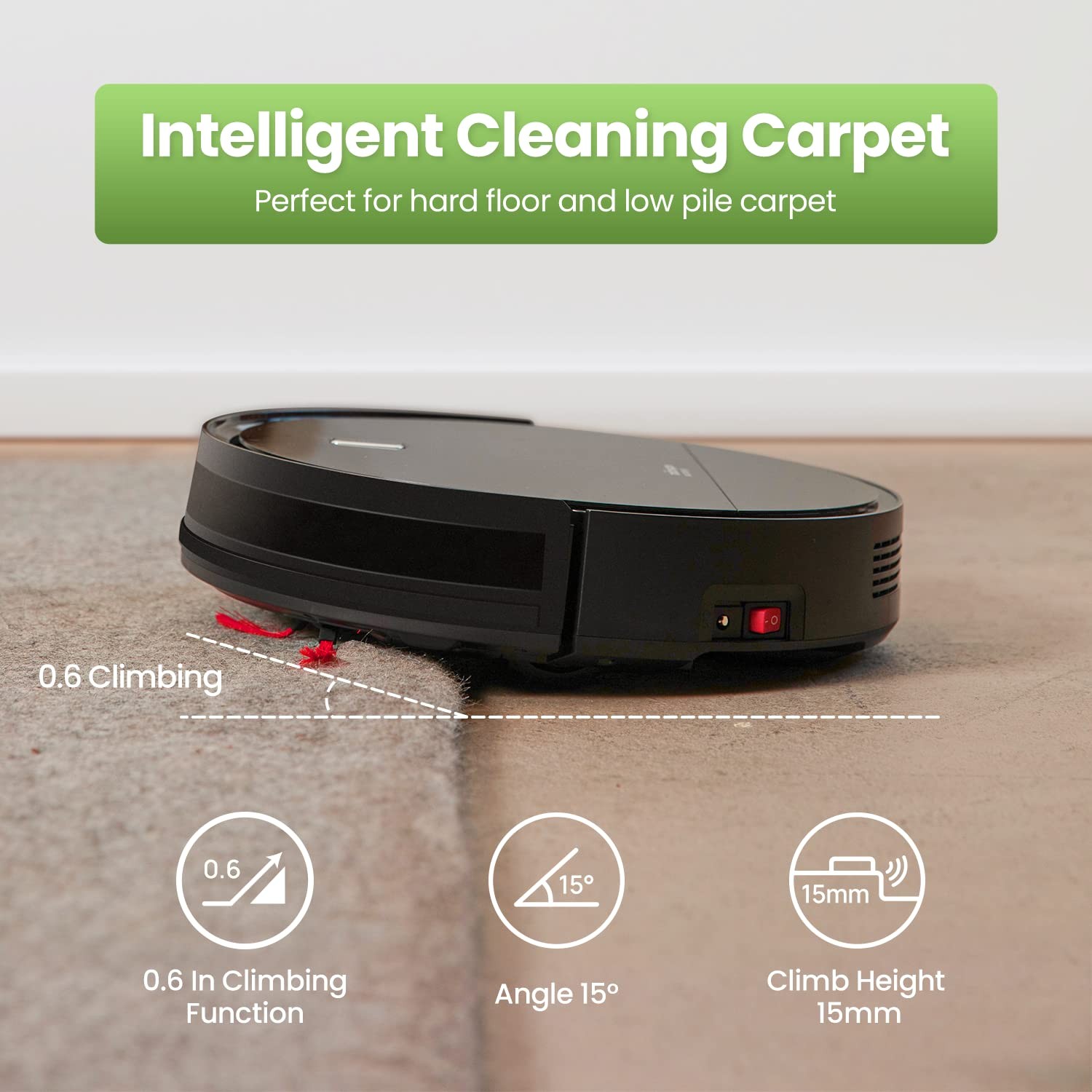 Enther Robot Vacuum Cleaner, Robotic Vacuum Cleaner with Gyro Navigation, 2600mAh, 120mins Run Time, Super-Thin, 6 Clean Modes, Self-Charging for Pet Hair Hard Floors, Carpet, Black