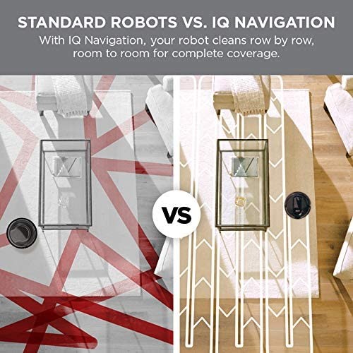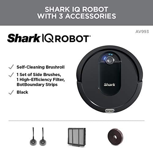 INCREDIBLE SUCTION: Deep-cleaning power to take on large debris, small debris, and pet hair on carpets and floors. NO HAIR WRAP: Self-cleaning brushroll removes pet hair and long hair as it cleans--no more hair wrap. PHONE OR VOICE COMMAND: Schedule whole-home cleanings with the SharkClean app or voice control with Amazon Alexa or Google Assistant. ROW-BY-ROW CLEANING: Methodically cleans row-by-row and then navigates room-to-room for complete home coverage. RECHARGE AND RESUME: The Shark IQ Robot vacuum will return to the dock, recharge, and can pick up where it left off. PERFECT FOR PETS: Designed for homes with pets, this automatic vacuum features an XL-capacity dust bin, a self-cleaning brushroll, and a high-efficiency filter to capture dust, dander, and pet allergens. HANDLE EDGES AND CORNERS: Dual spinning side brushes pull in debris from corners and edges. Includes: Shark IQ Robot, (1) Charging Dock, (2) Side Brushes, (1) Filter, (1) BotBoundary Strips