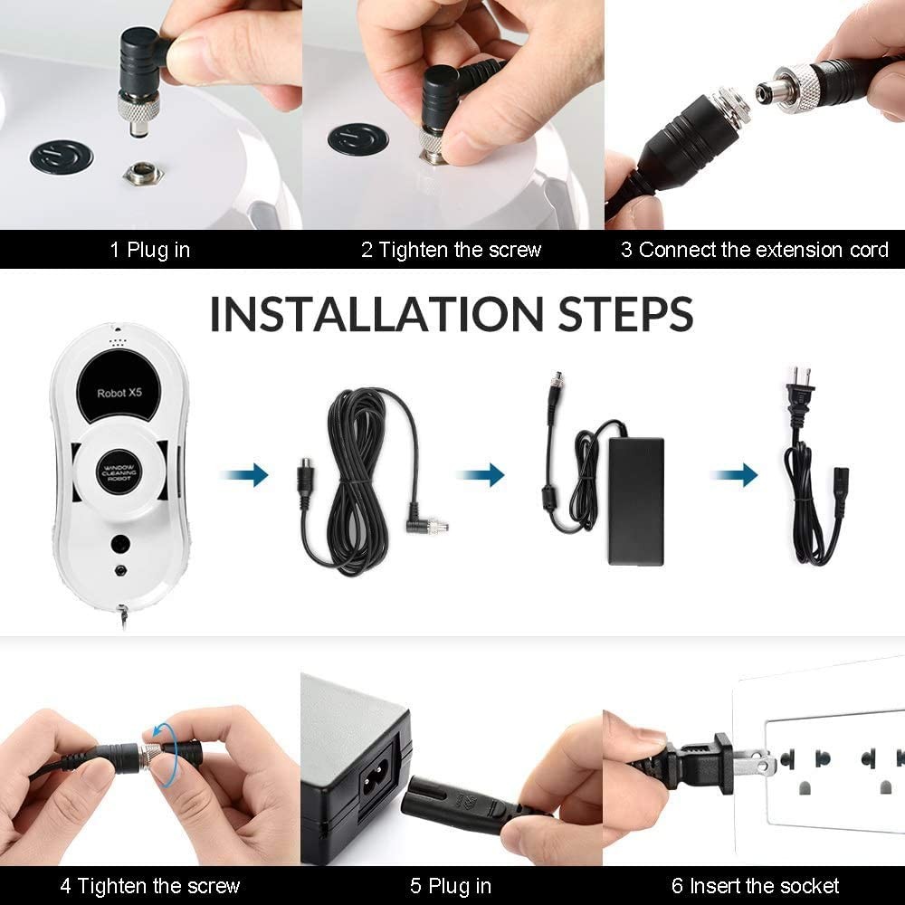 HIGHRISE CLEANING - This window cleaning robot definetely is a great helper, it brings comfort, practicality and safety to your life, it makes fun and save more time to windows cleaning. This window cleaner robot can reach to 6M/20ft, no problem for highrise cleaning. (2M/7ft adapter cord+ 4M/13ft extension cord)