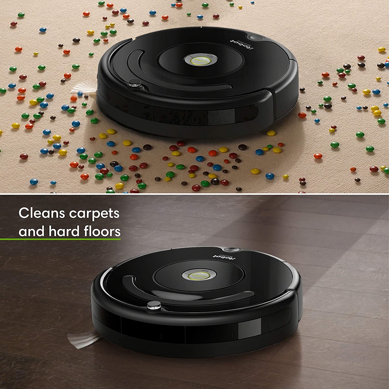 Capacity volume - .6 liter. Works with Alexa for voice control (Alexa device sold separately) Clean and schedule from anywhere with the iRobot HOME App; compatible with Amazon Alexa and the Google Assistant Patented 3-Stage Cleaning System and Dual Multi-Surface Brushes pick up everything from small particles to large debris Full suite of intelligent sensors guide the robot under and around furniture to help thoroughly clean your floors Auto-Adjust Cleaning Head automatically adapts its height to effectively clean carpets and hard floors